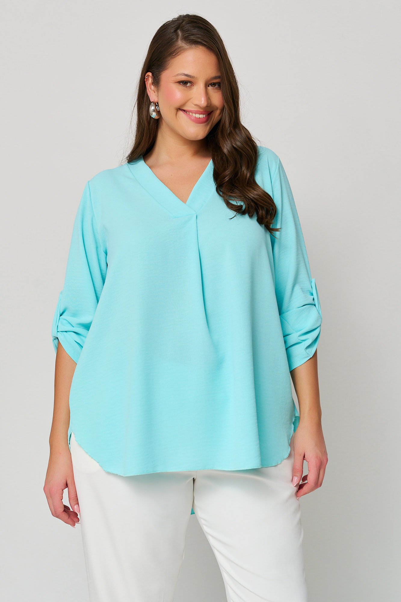 Το ρούχο Ασύμμετρη Πουκαμίσα V Cecylia Γαλάζιο της JUCITA συνδυάζει άνεση και στυλ. Plus size μόδα για κομψές γυναίκες γεμάτες αυτοπεποίθηση.