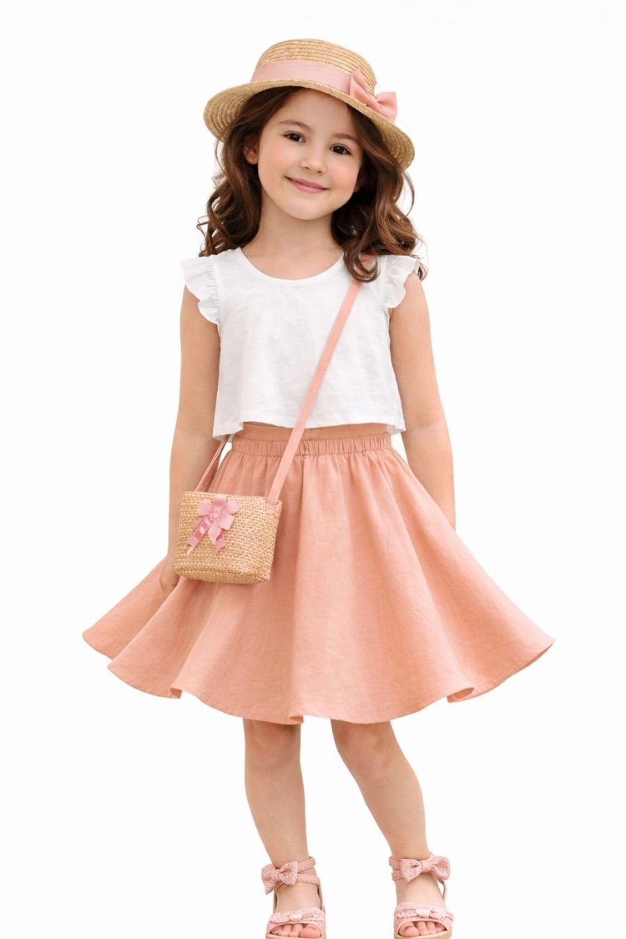 Pattern for a children’s Lambada skirt, umbrella line, with an elastic waistband and optional 3-centimeter button on the side seam. For girls aged 2 to 6 years old. You will also receive all 5 sizes.