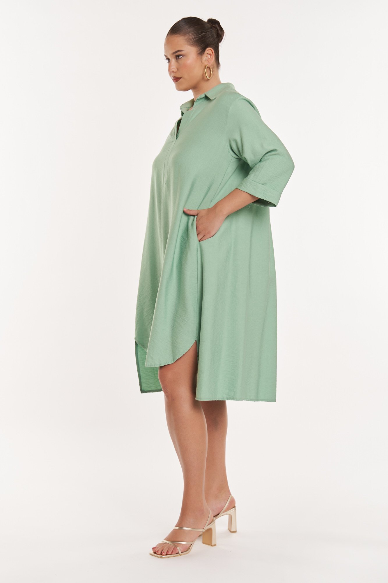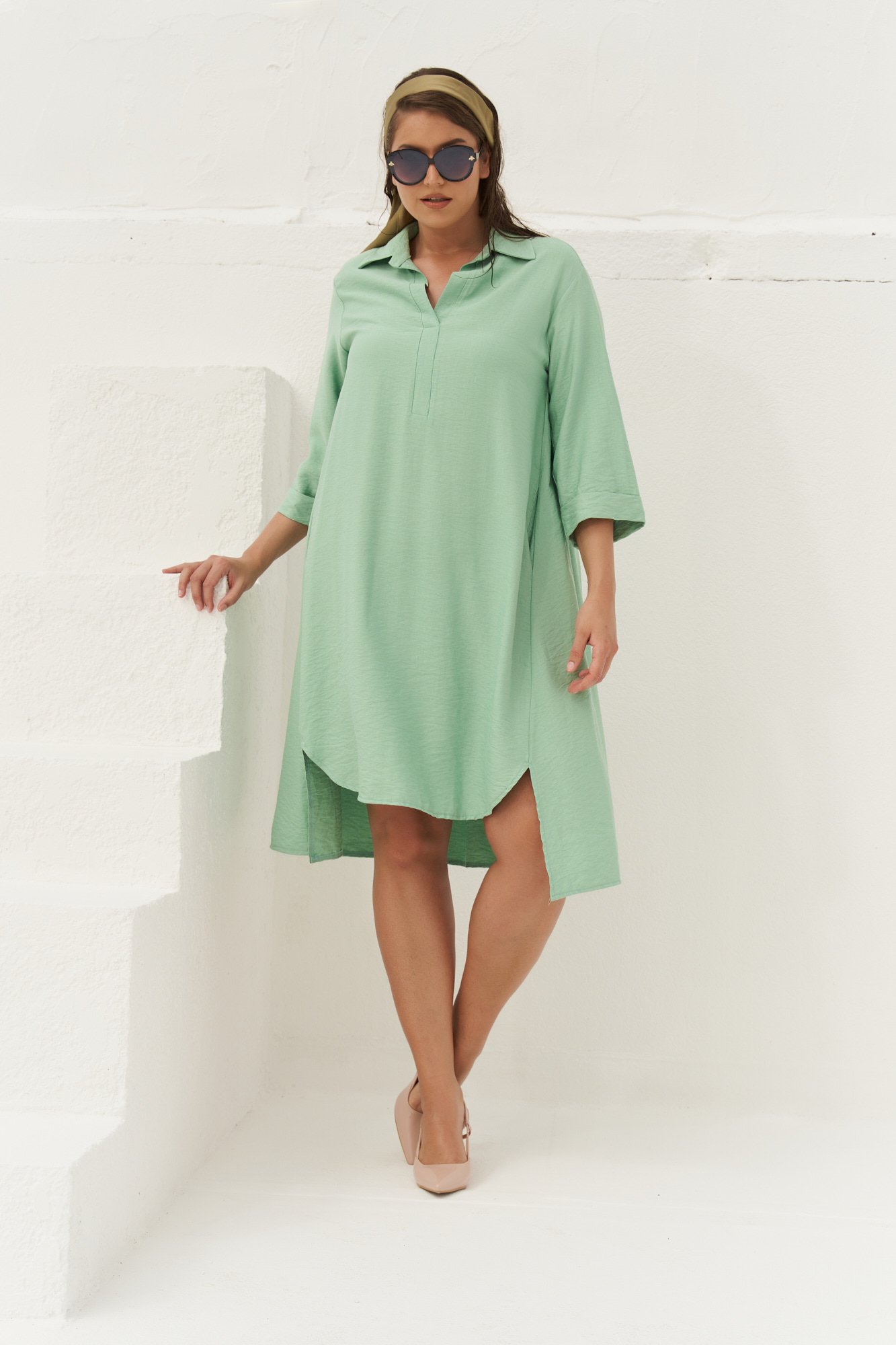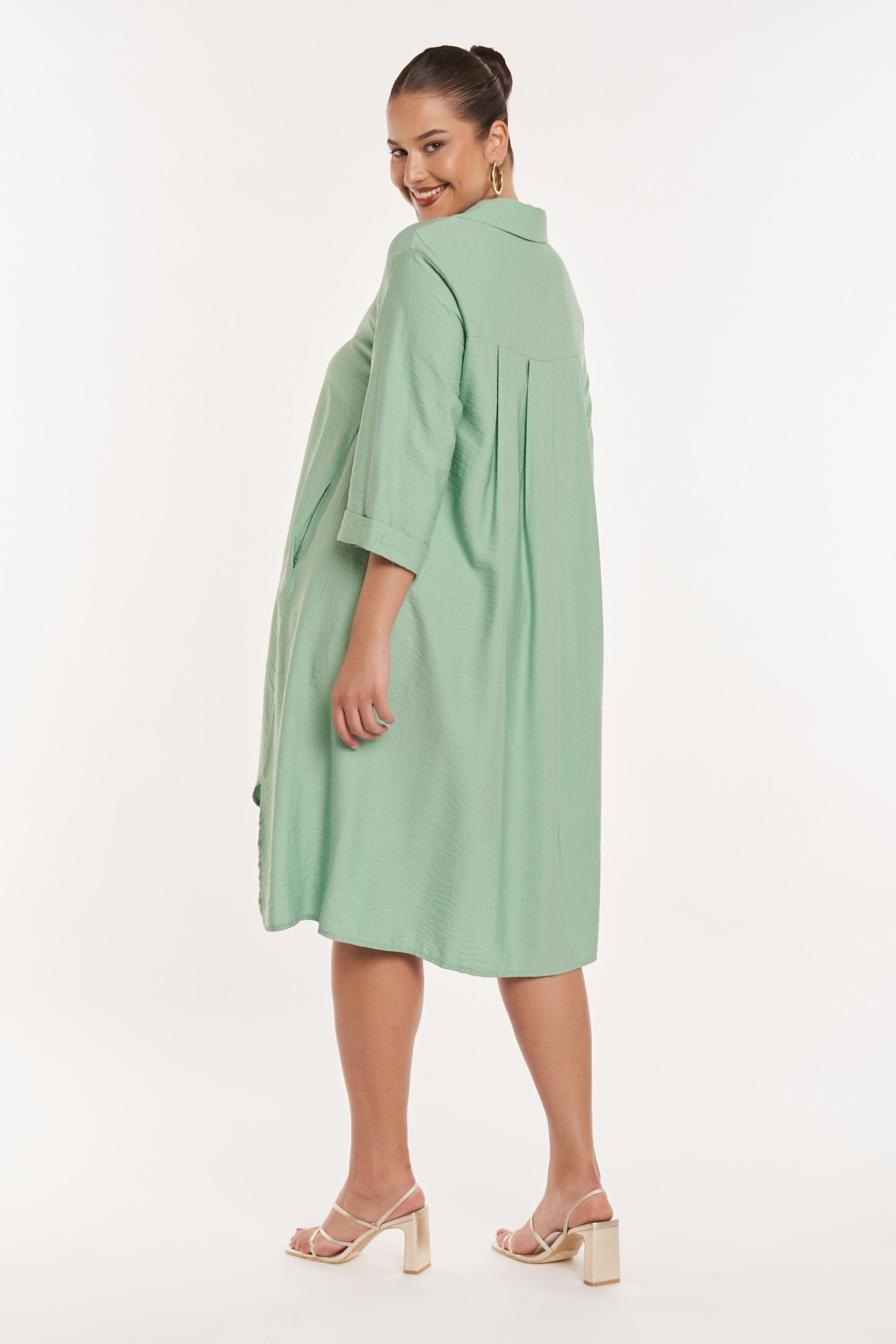 Το φόρεμα Φόρεμα Κρεπ με Γιακά Clara Μέντα της JUCITA συνδυάζει άνεση και στυλ. Plus size μόδα για κομψές γυναίκες γεμάτες αυτοπεποίθηση.