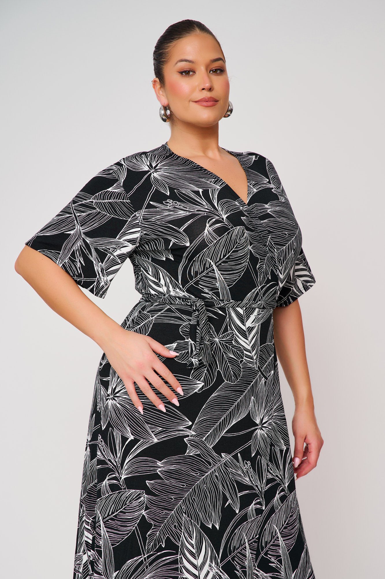 Το φόρεμα Φόρεμα Κρουαζέ Μάξι Εμπριμέ Viviana Μαύρο της JUCITA συνδυάζει άνεση και στυλ. Plus size μόδα για κομψές γυναίκες γεμάτες αυτοπεποίθηση.