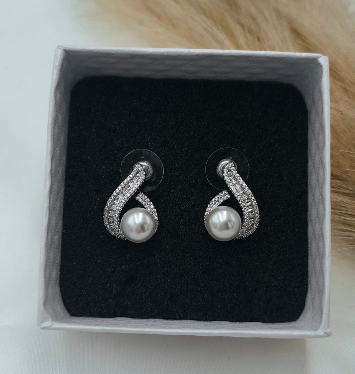 Σκουλαρίκια επιπλατινωμένα ασημένια με πέρλα πολύ κομψά για νυφικά σκουλαρίκια ή επίσημες περίστασεις.