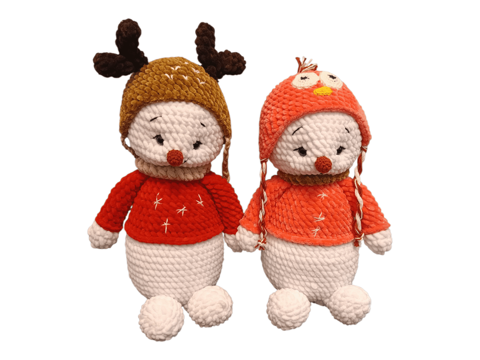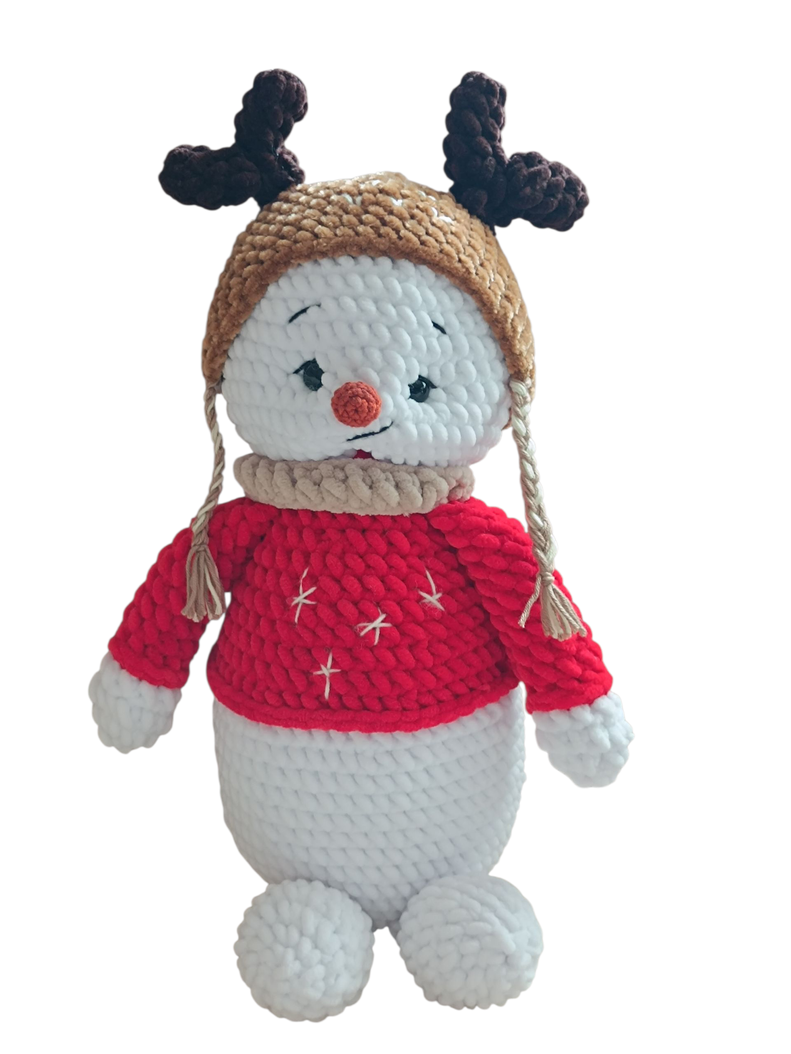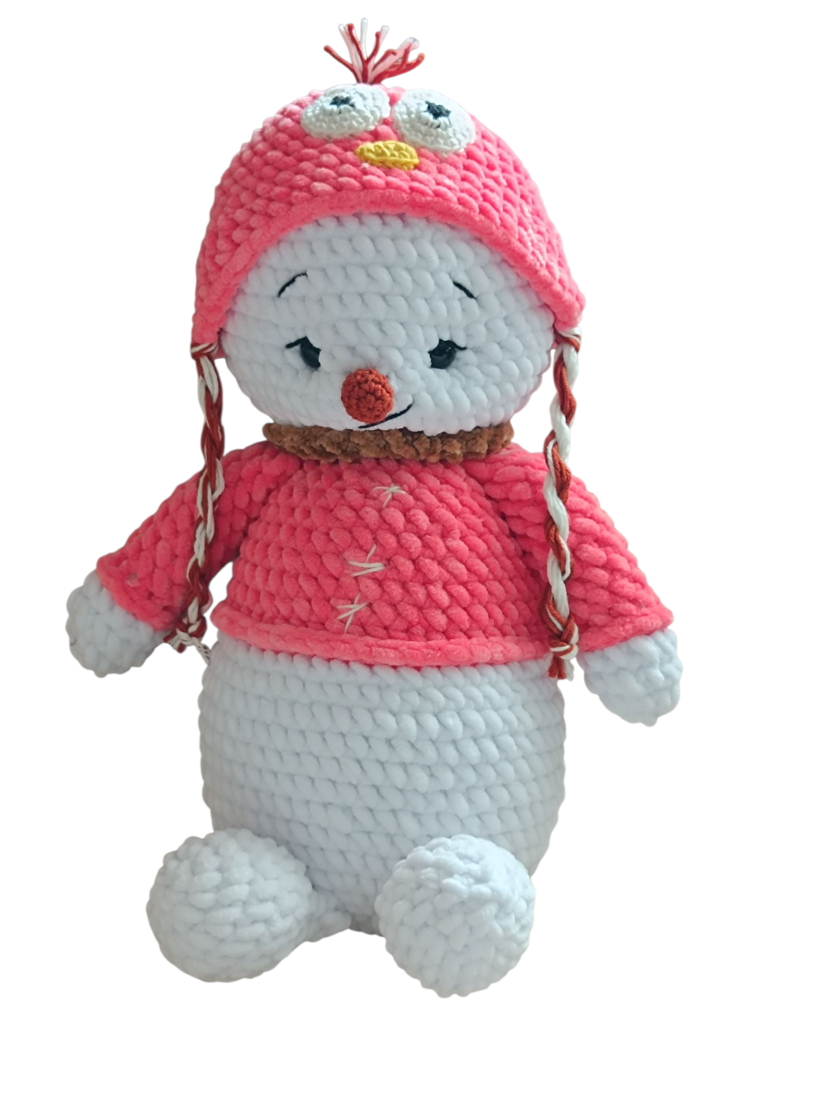 Χειροποίητος χιονάνθρωπος με νήμα βελουτε κατάλληλο για παιδιά.