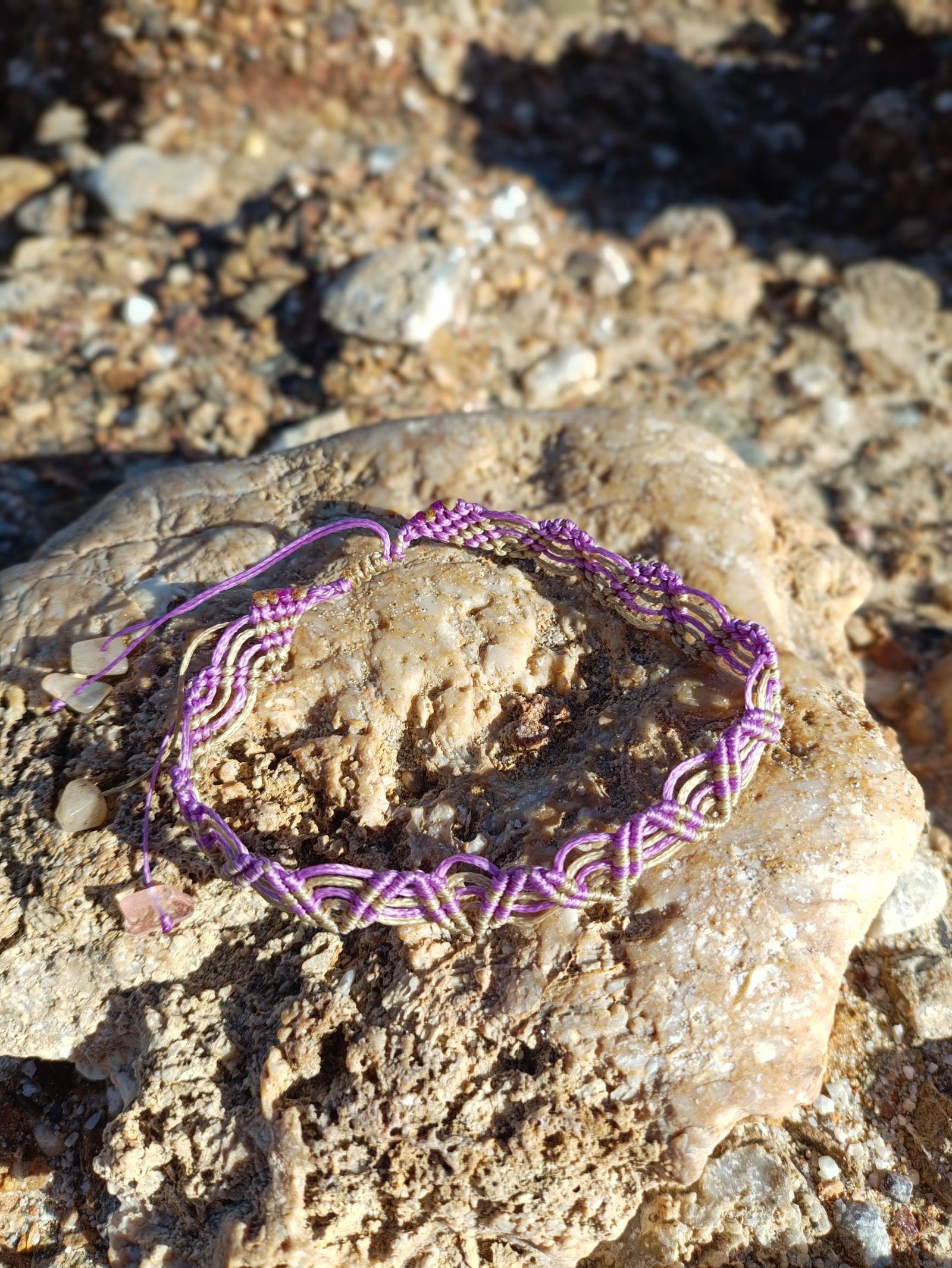 Μακραμέ βραχιόλι αστραγάλου μπεζ-μωβ