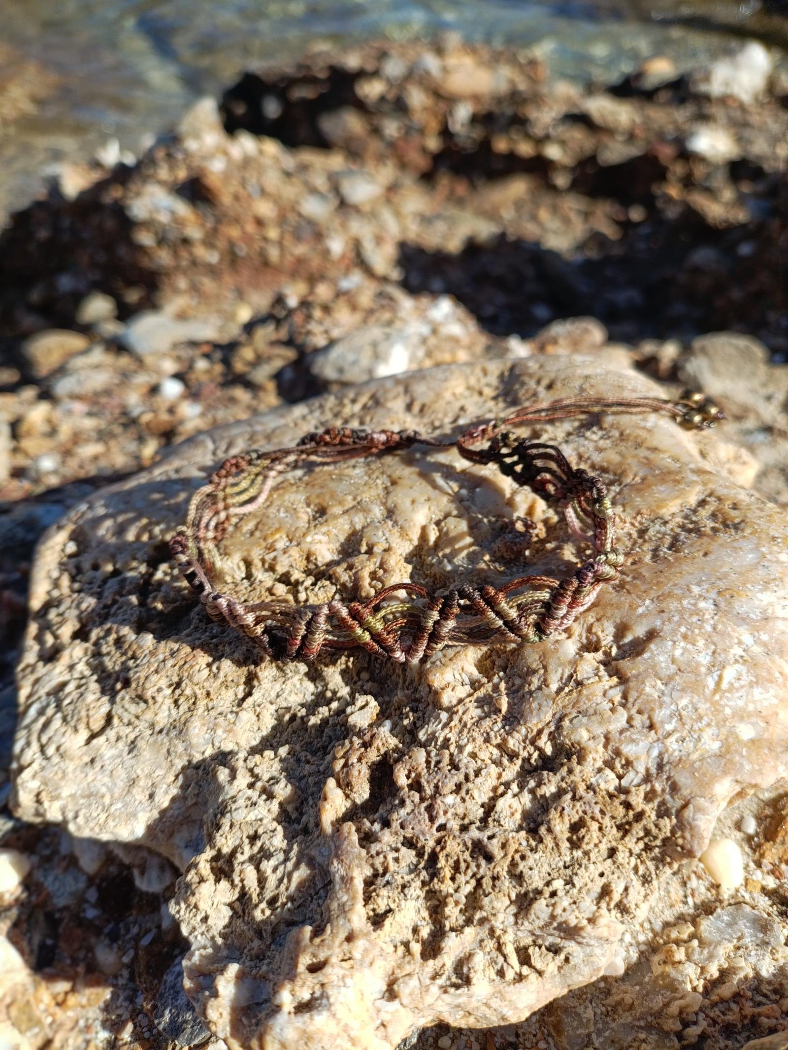 Μακραμέ βραχιόλι αστραγάλου καφέ-μπεζ