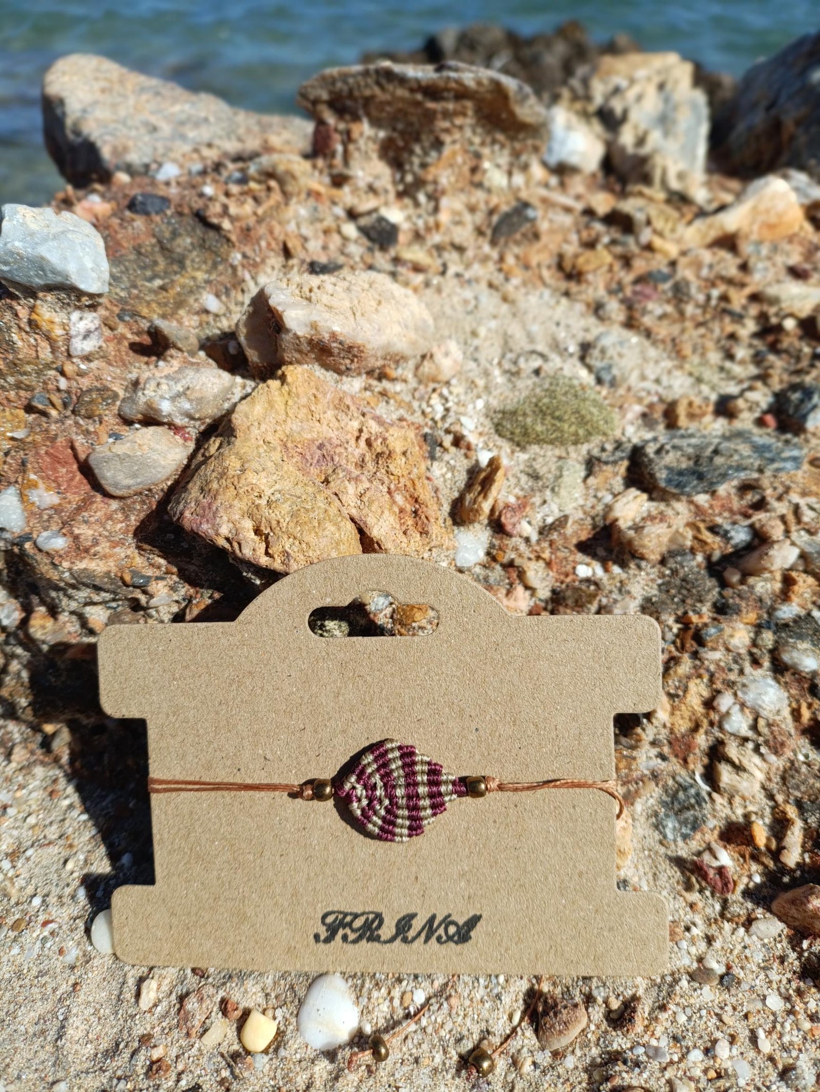 Μακραμέ βραχιόλι χεριού μπεζ – μπορντώ