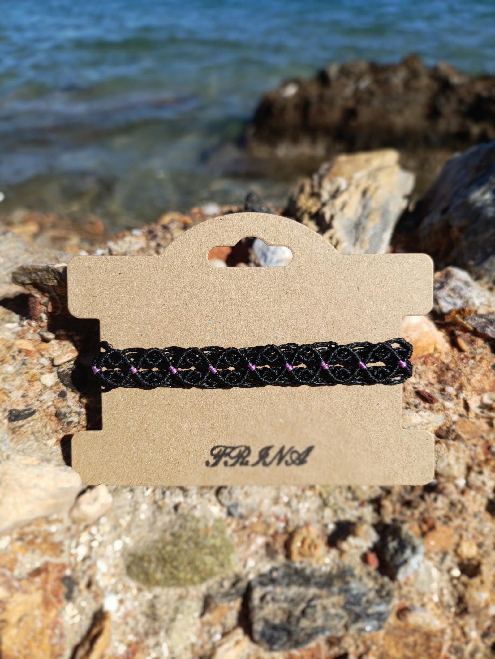 Μακραμέ βραχιόλι χεριού διπλή αλυσίδα μαύρο-μωβ