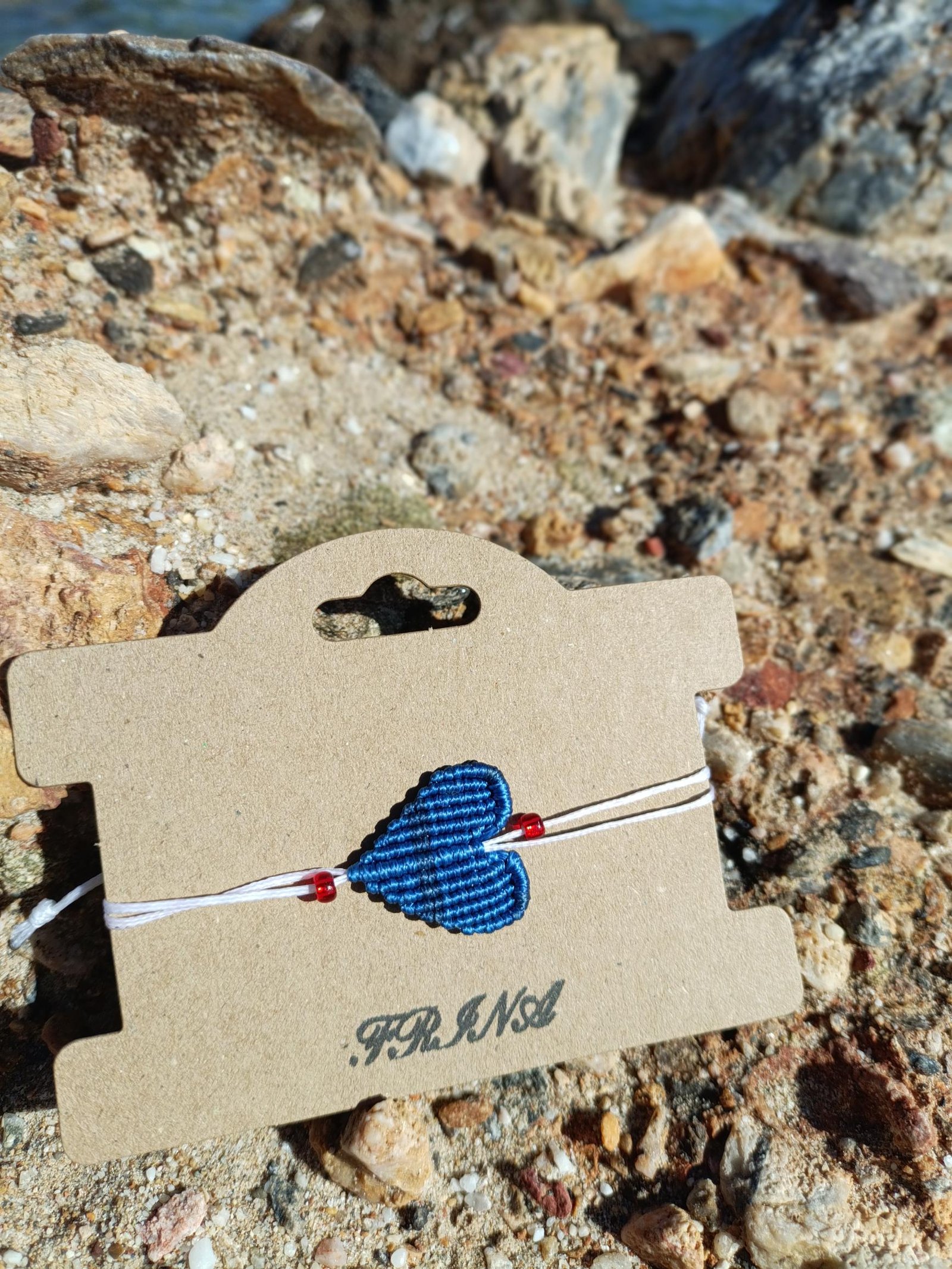 Μακραμέ βραχιόλι χεριού καρδιά μπλε