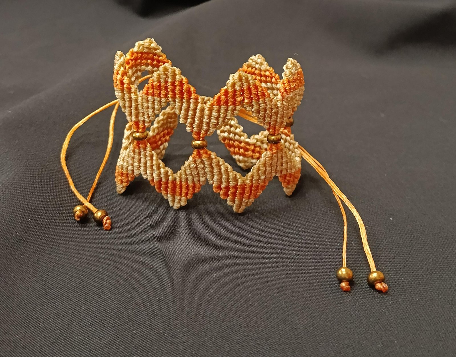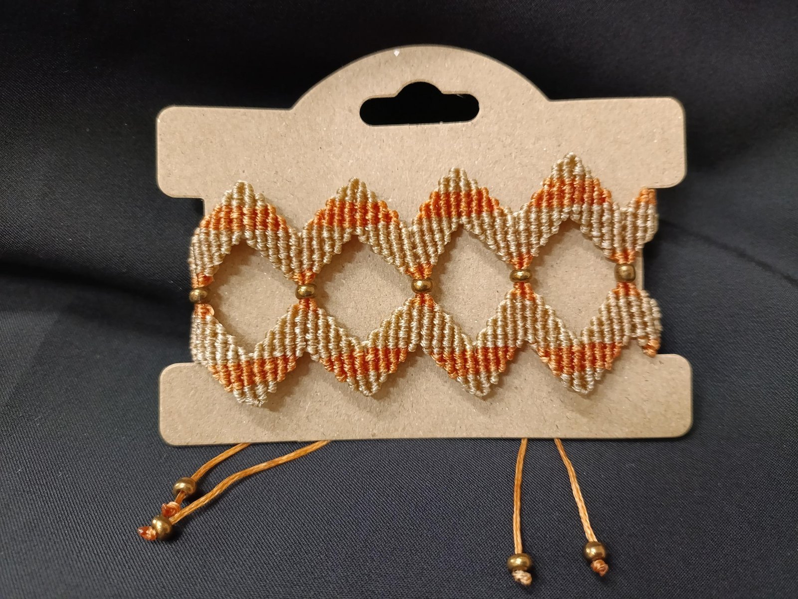 Μακραμέ βραχιόλι χεριού ζικ ζακ πορτοκαλί μπέζ