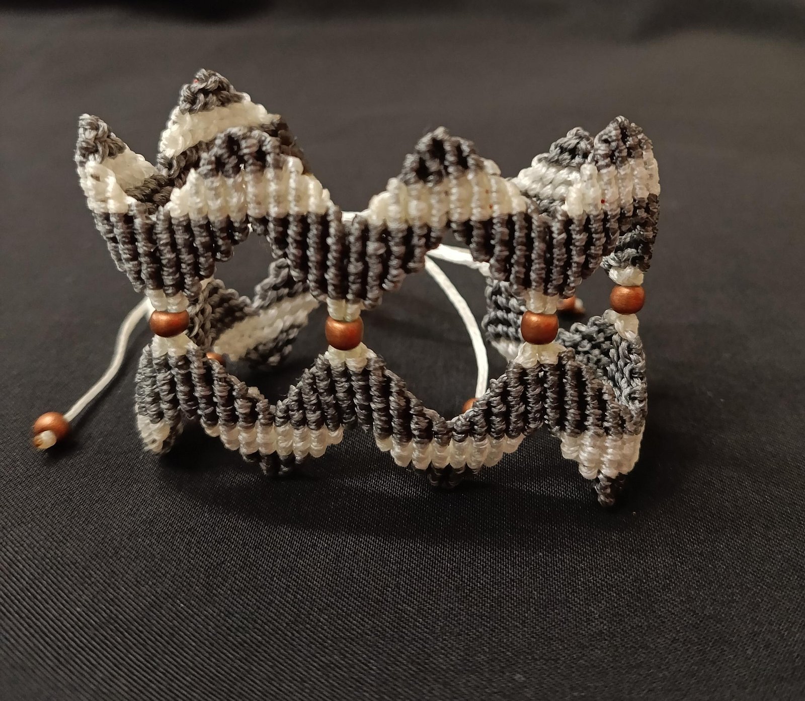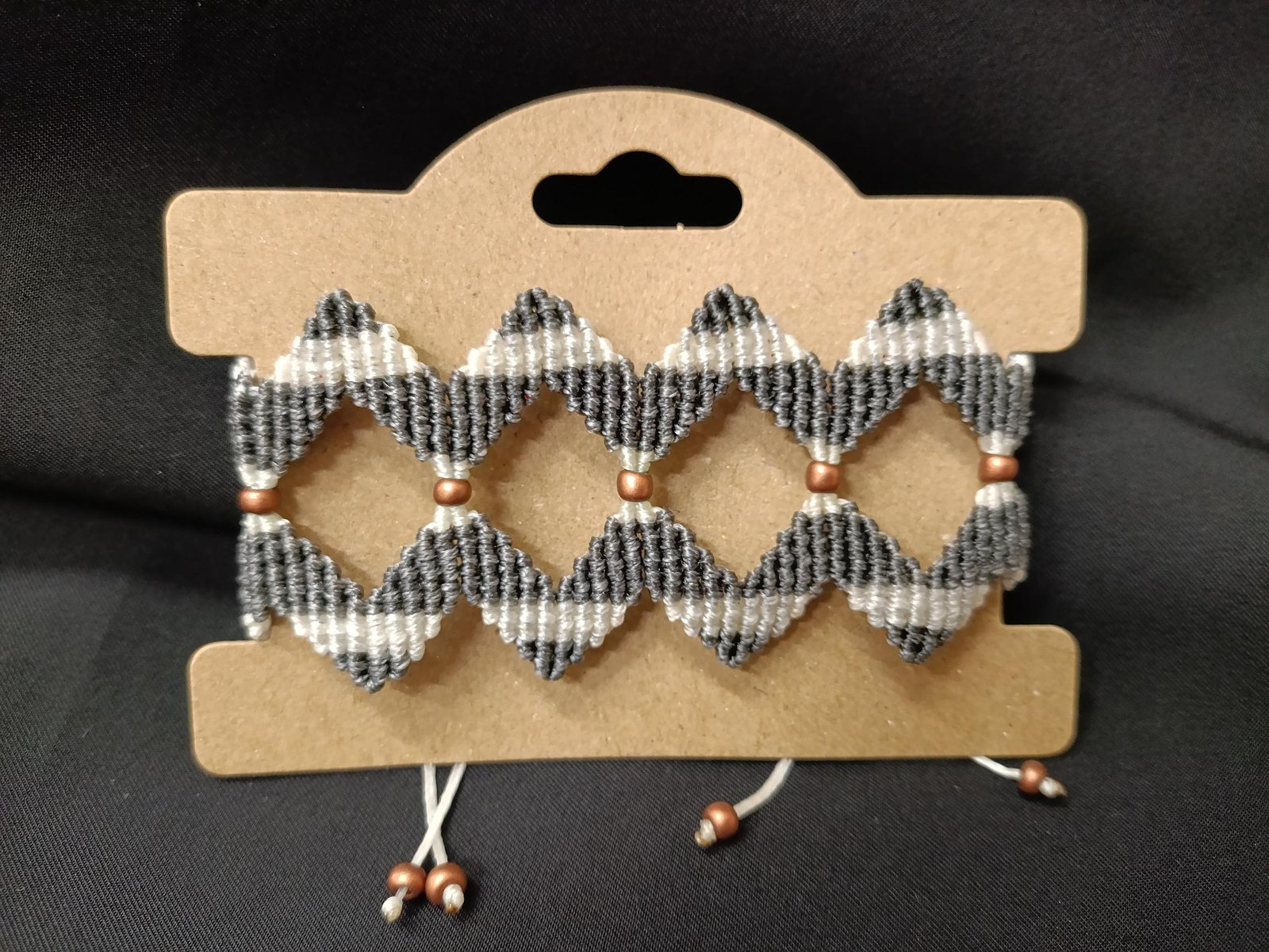 Μακραμέ βραχιόλι χεριού ζικ ζακ γκρί άσπρο
