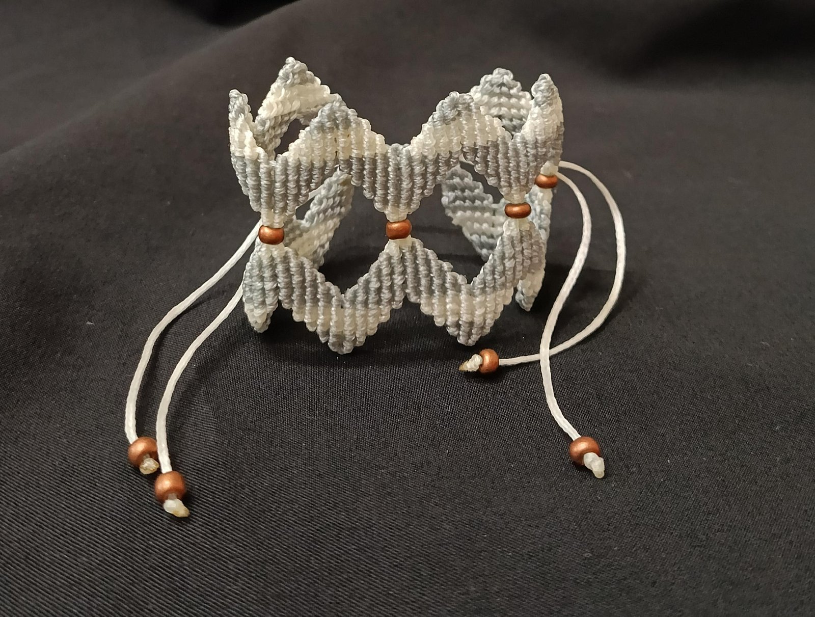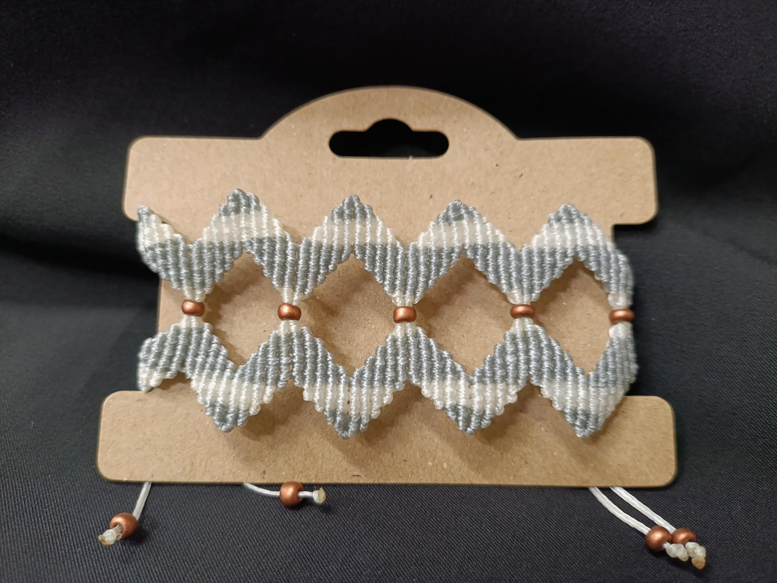 Μακραμέ βραχιόλι χεριού ζικ ζακ γκρί άσπρο