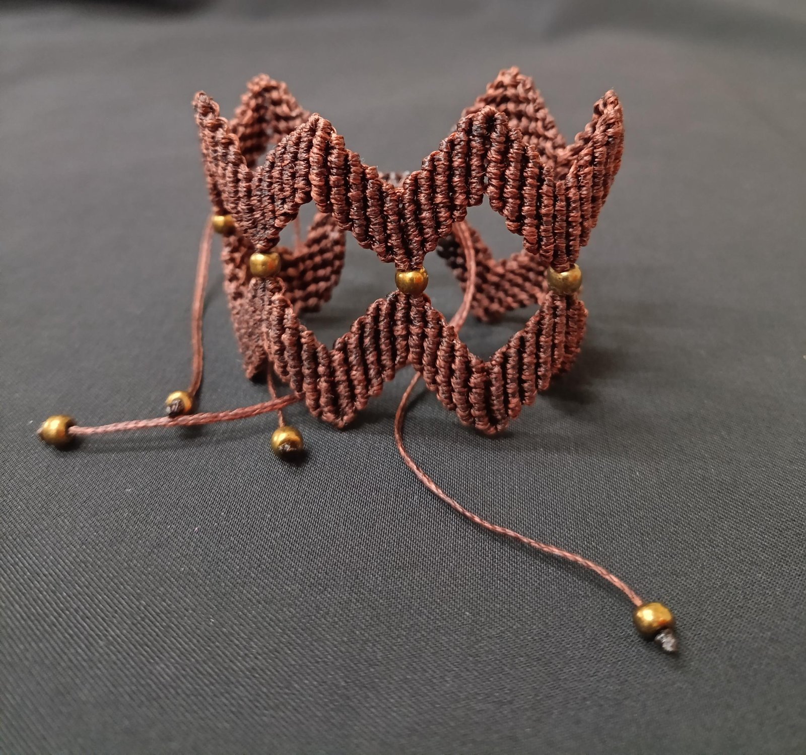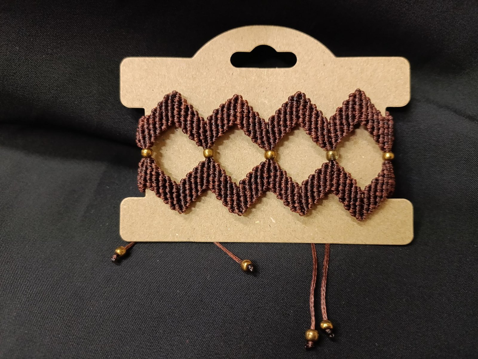 Μακραμέ βραχιόλι χεριού ζικ ζακ καφέ σκούρο