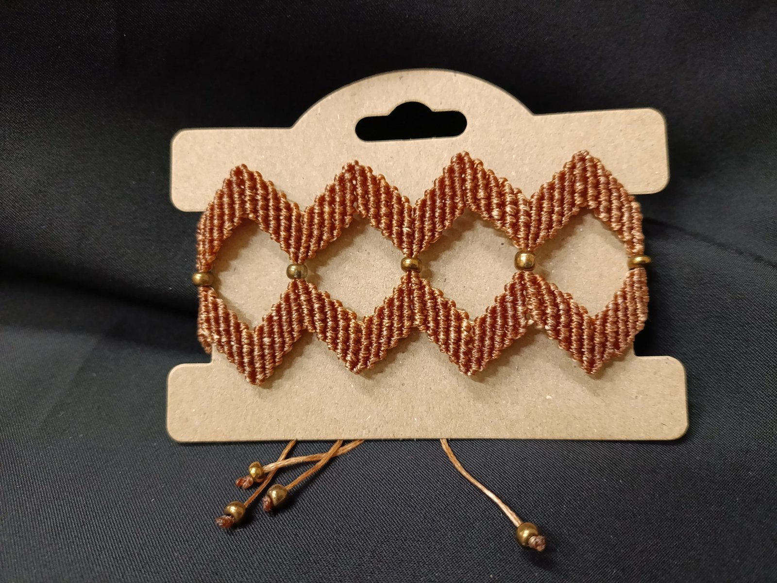 Μακραμέ βραχιόλι χεριού ζικ ζακ μελί