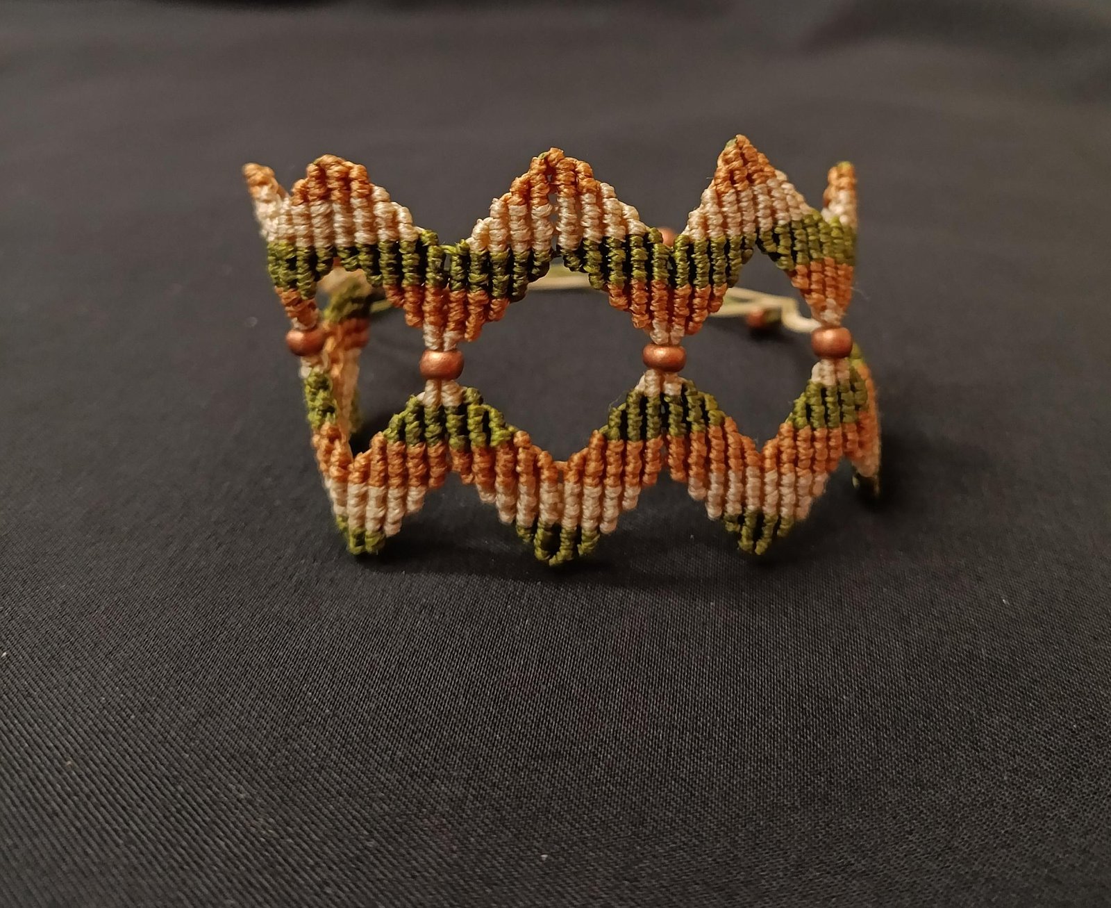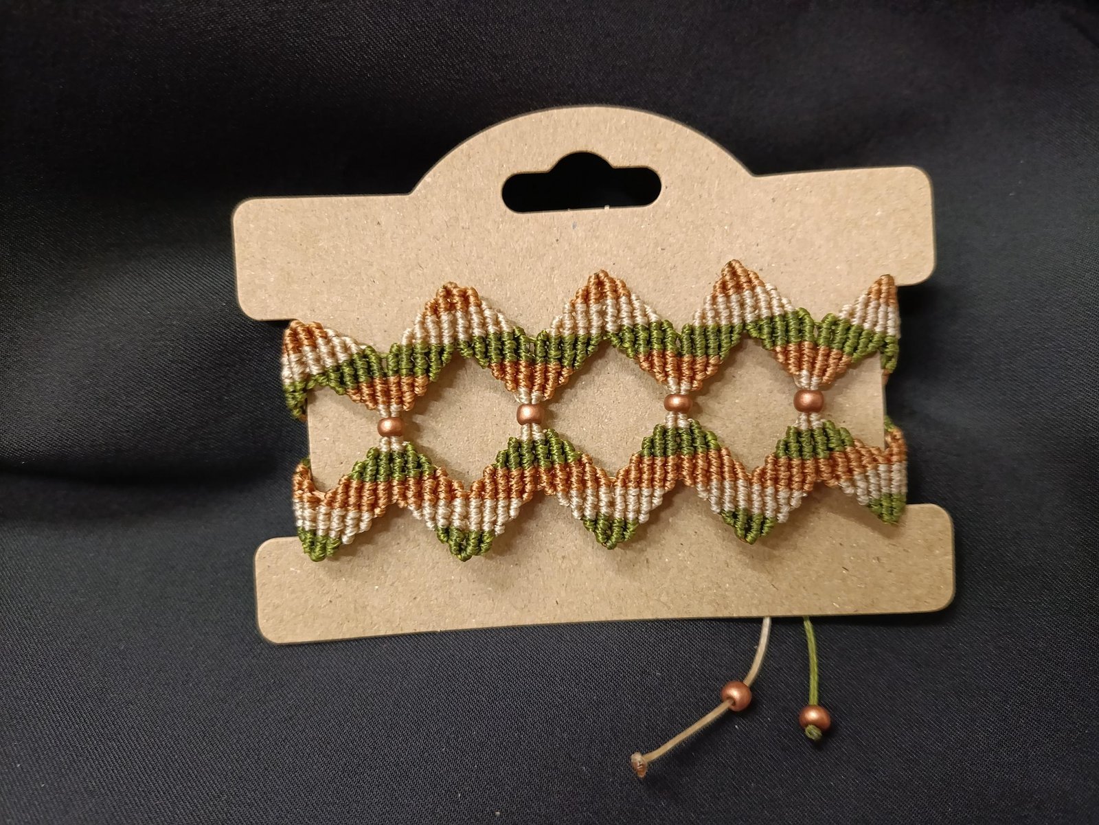 Μακραμέ βραχιόλι χεριού ζικ ζακ χακί – μελί – μπεζ