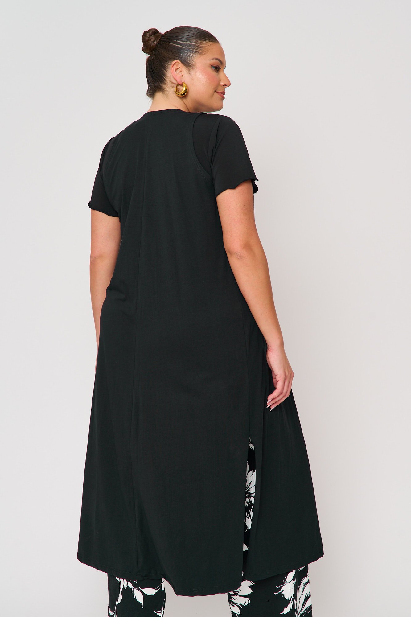 Μακρύ αμάνικο γιλέκο. Ανοίγματα στα πλαϊνά για ευκολία στην κίνηση. Φορέστε το πάνω από το αγαπημένο σας σύνολο ή φόρεμα. Ένα υπέροχο κομμάτι που θα αναβαθμίσει ακόμα και το πιο απλό λουκ. Οne size που καλύπτει στήθος έως 130εκ. και περιφέρεια έως 140εκ. Μήκος 130εκ. Η Ιβάνα έχει ύψος 180εκ, στήθος 114εκ ,μέση 88εκ και περιφέρεια 121εκ.