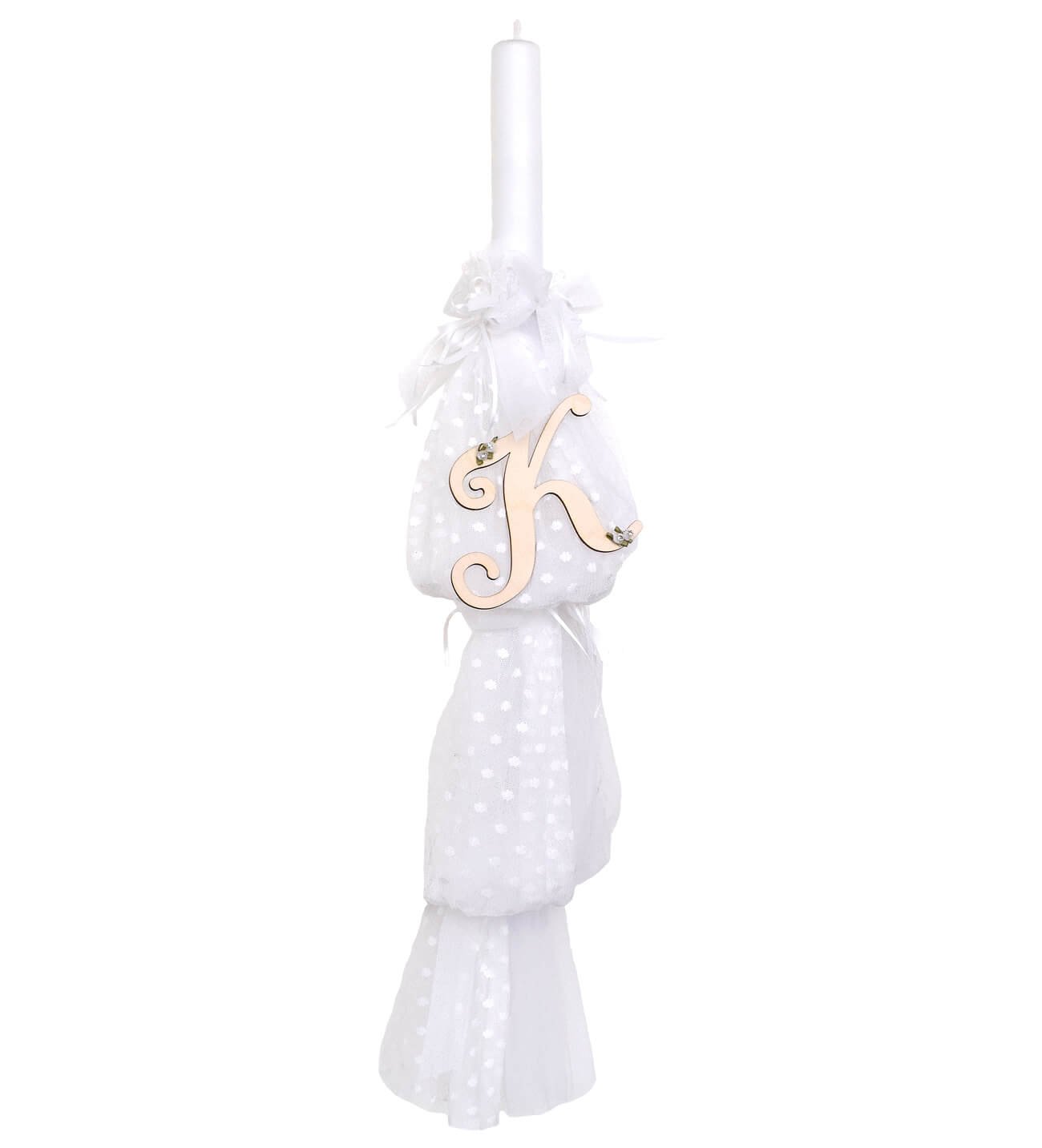NstNastasia Λαμπάδα Βάπτισης Λευκή Πουά