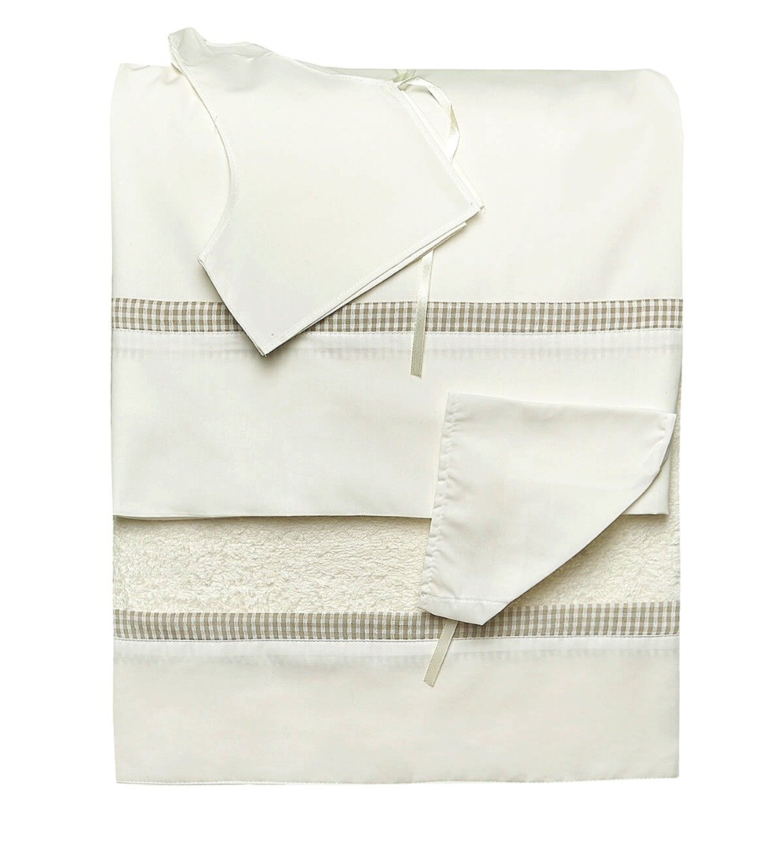 Λαδόπανα βάπτισης με λεπτομέρεια από λαδί καρό ύφασμα, βαμβακερά, υποαλλεργικά. Περιέχουν: τα Εσώρουχα του παιδιού – την Πετσέτα του παιδιού – την Πετσέτα χεριών του παπά και του νονού-νονάς – το Σεντόνι του παιδιού. Για ηλικίες 0-3 χρόνων. Έτοιμα προς χρήση. Διαστάσεις πετσέτας: 1,40×70 Διαστάσεις σεντονιού: 1,30×90 Υπάρχει δυνατότητα να γράψουμε το όνομα ή το μονόγραμμα στην πετσέτα και το σεντόνι της βάπτισης.