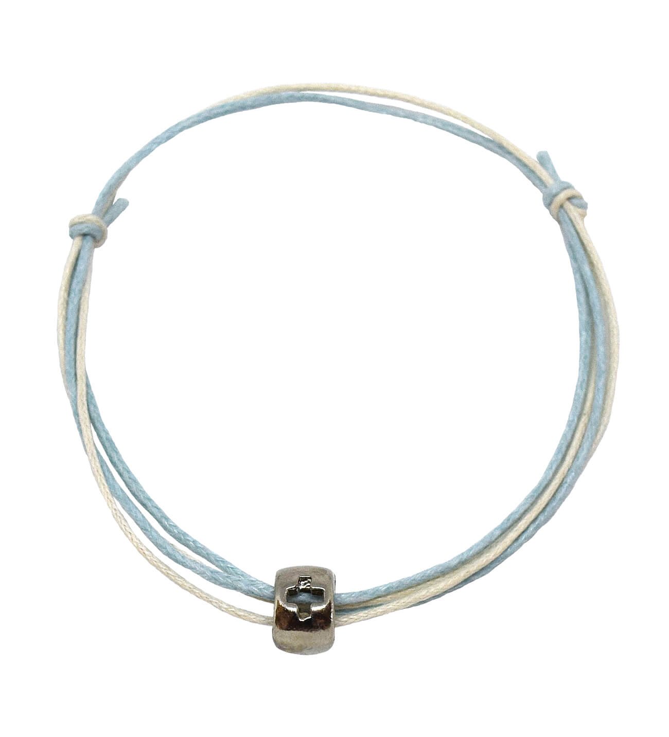 Μαρτυρικά βάπτισης βραχιόλι από σιέλ εκρού κερόνημα και νίκελ σταυρό, 50 τεμάχια, ελληνικής παραγωγής. Απαραίτητα για να γίνουν οι καλεσμένοι της βάπτισης μάρτυρες του μυστηρίου.