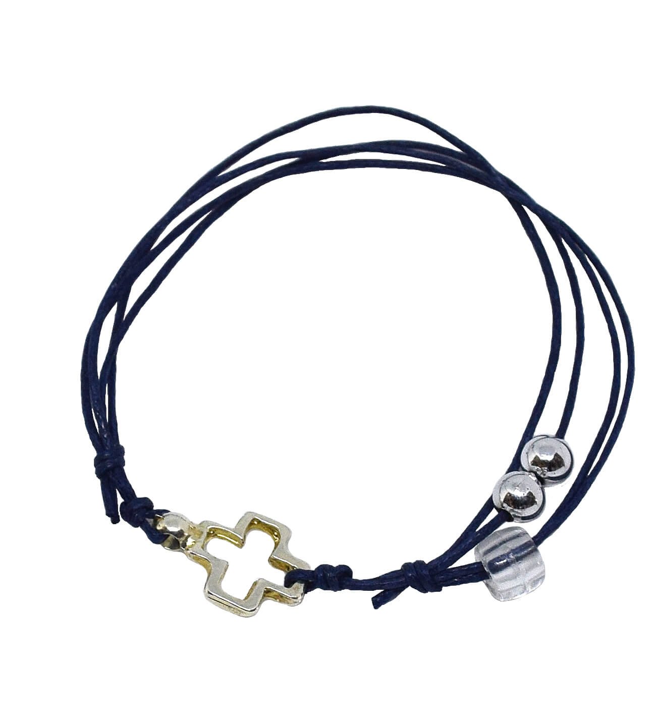 Μαρτυρικά βάπτισης βραχιόλι από μπλε κερόνημα, χάντρες και νίκελ τρυπητό σταυρό, 50 τεμάχια, ελληνικής παραγωγής. Απαραίτητα για να γίνουν οι καλεσμένοι της βάπτισης μάρτυρες του μυστηρίου.