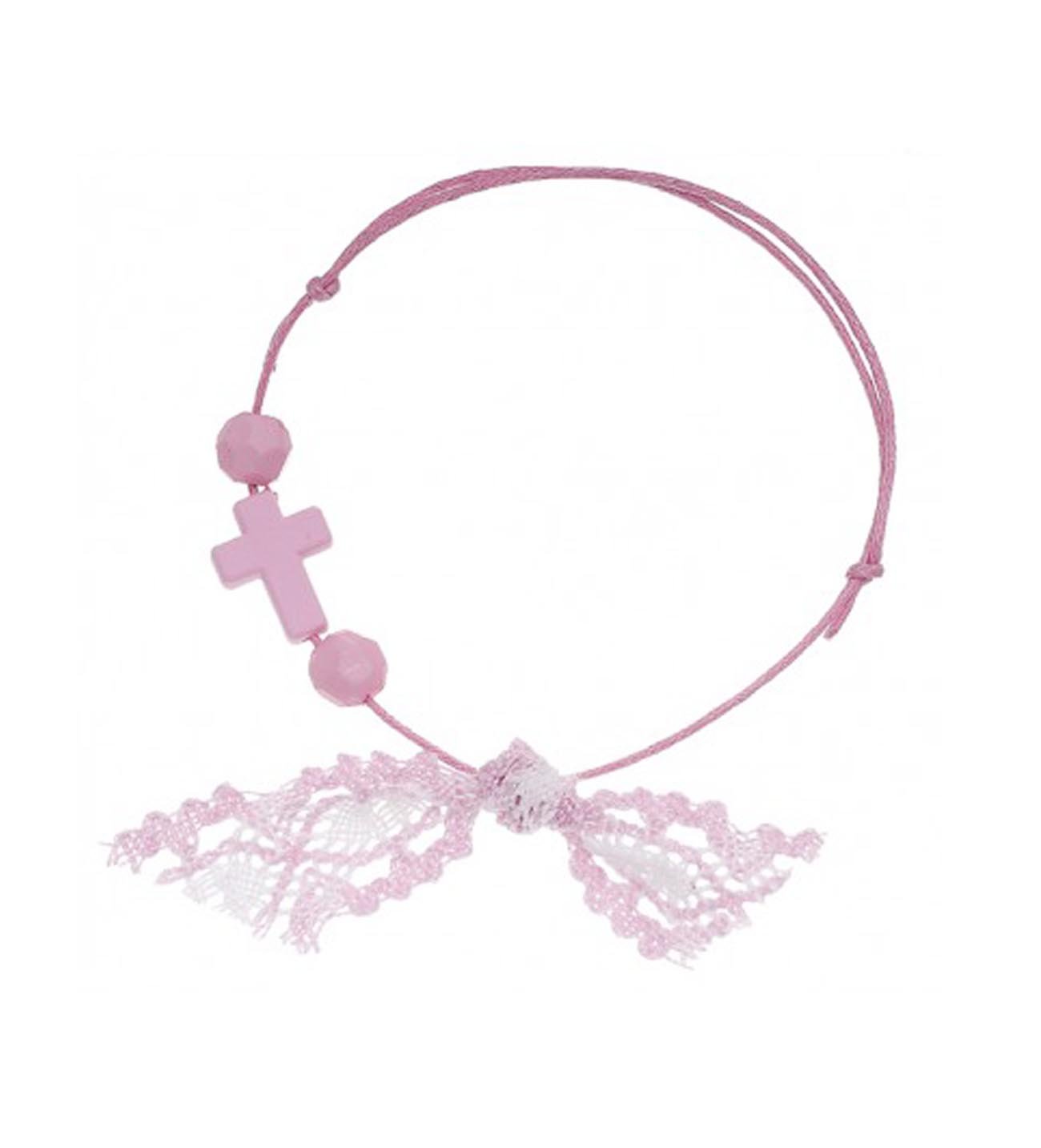 Μαρτυρικά βάπτισης βραχιολάκι σε ροζ χρώμα, με ροζ σταυρό, ροζ κορδελάκι και χάντρες, 50 τεμάχια, ελληνικής παραγωγής. Χρειαζόμαστε 5-7 εργάσιμες για την κατασκευή τους. Απαραίτητα για να γίνουν οι καλεσμένοι της βάπτισης μάρτυρες του μυστηρίου. 21828