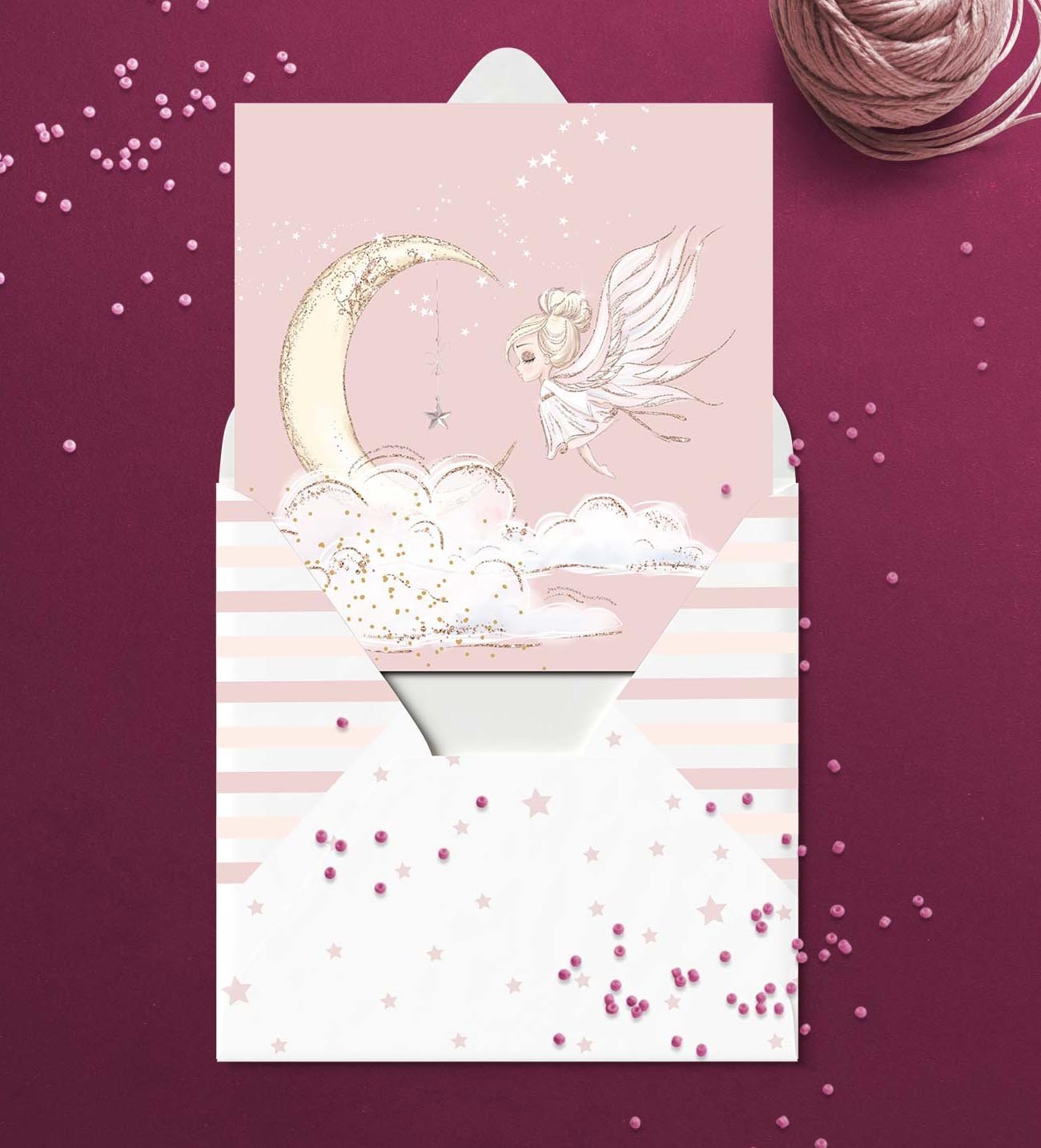 Προσκλητήριο βάπτισης, με θέμα νεράιδα. ΜΕ ΦΑΚΕΛΟ. Διαστάσεις: 15εκ. x 16εκ. (Υπάρχει περίπτωση το τελικό να αποκλείνει 5% από τις παραπάνω διαστάσεις) Υλικό χαρτιού: Οπαλίνα 300 γραμμαρίων Προσοχή: Για να ισχύει η αγορά του προϊόντος πρέπει να αγοράσετε και την ΜΑΚΕΤΑ. Χρειαζόμαστε 7-10 εργάσιμες για την παραγωγή τους, από τη δική σας έγκριση, μετά την παραλαβή της μακέτας. Παρακαλούμε στα σχόλια γράψτε μας τις πληροφορίες για το προσκλητήριο, για γρηγορότερη παραγωγή μακέτας. 2112010