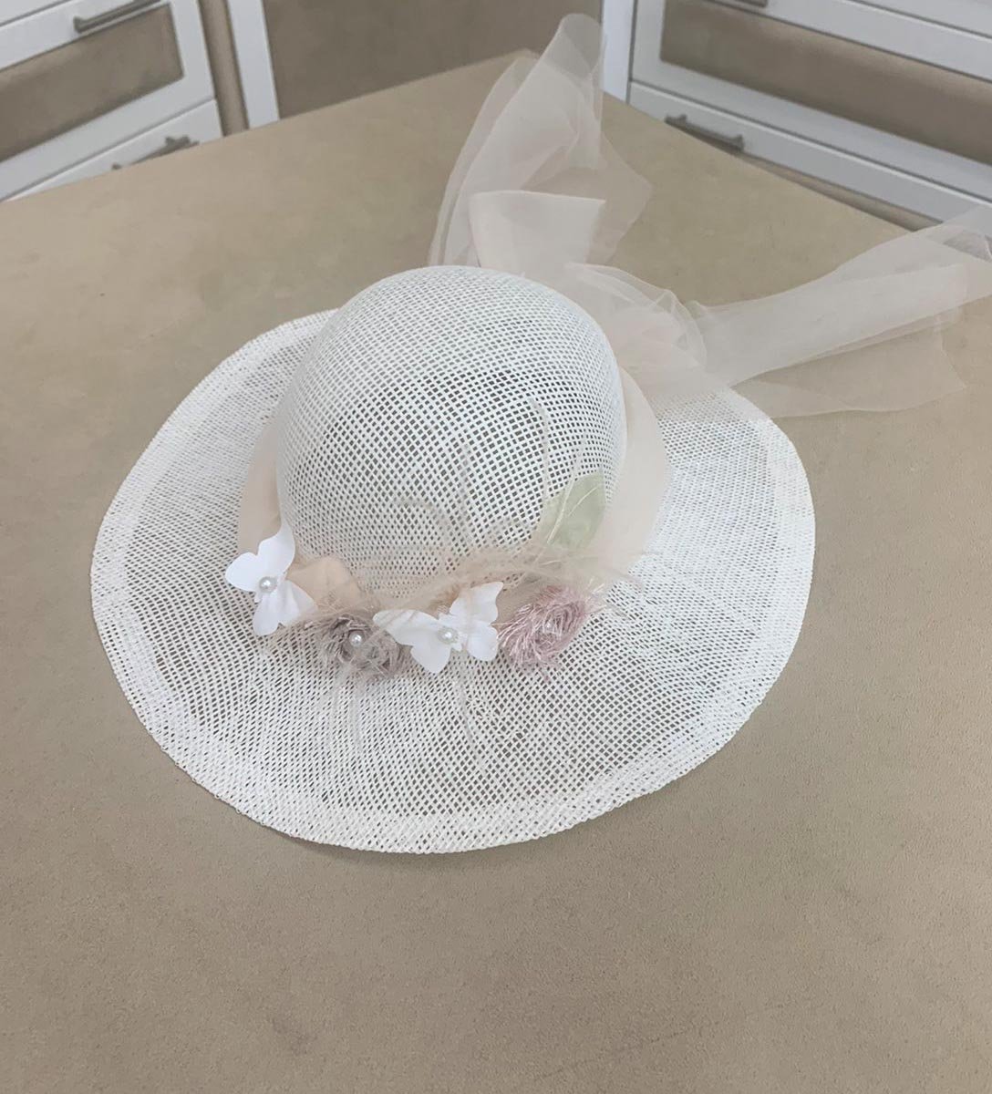NstNastasia Ψάθινο καπέλο βάπτισης 5478