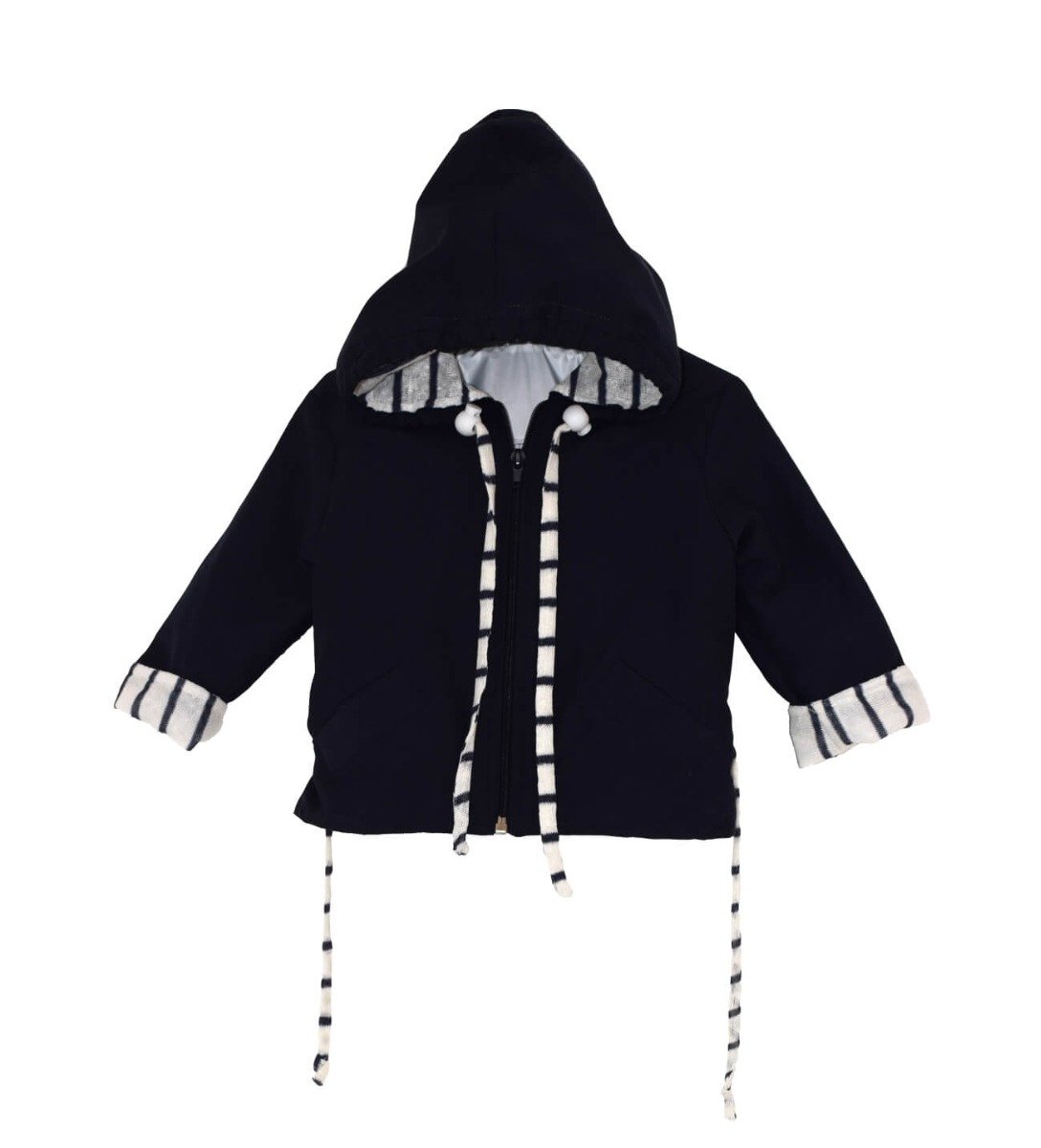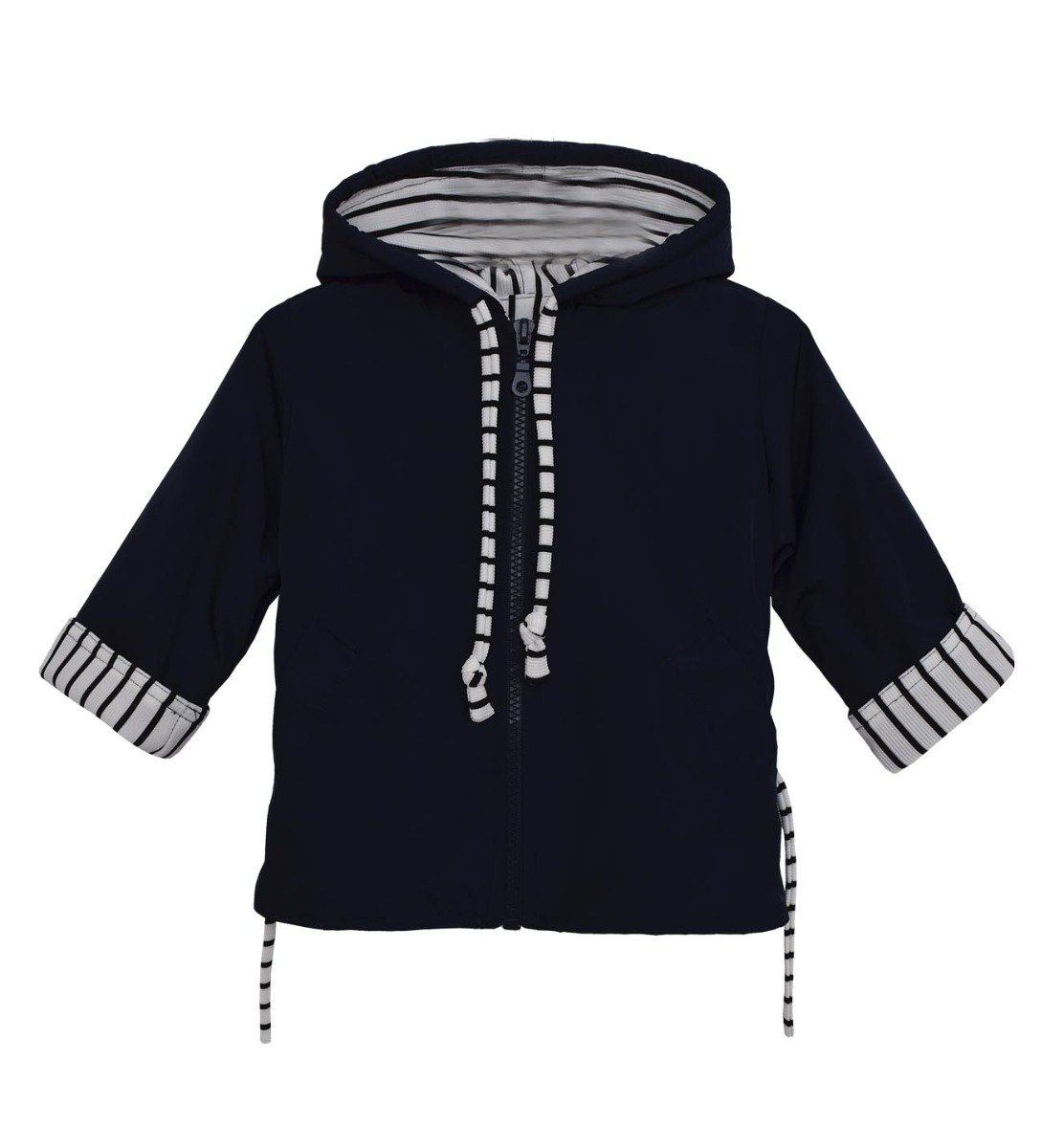 Μοντγκόμερι, Παλτό, Μπουφάν, Σακάκια, Γιλέκα, βρεφικά και παιδικά, υψηλής ποιότητας. Ελληνικής παραγωγής. Αντιανεμικό μπουφάν με μλπε-λευκή ριγέ πλεκτή επένδυση.