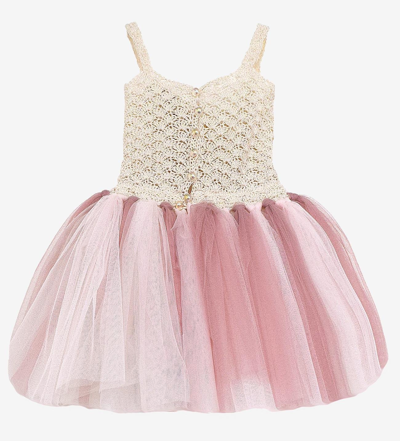 Βαπτιστικά ρούχα, ελληνικής ραφής, υψηλής ποιότητας. Παράγονται στον επαγγελματικό μας χώρο κατά παραγγελία στα μέτρα του παιδιού. Βαπτιστικό Φόρεμα με εκρού πλεκτό χειροποίητο μπούστο, τρία χειροποίητα τούλινα λουλούδια με πέρλες και φούστα από ροζ και dirty pink τούλια.