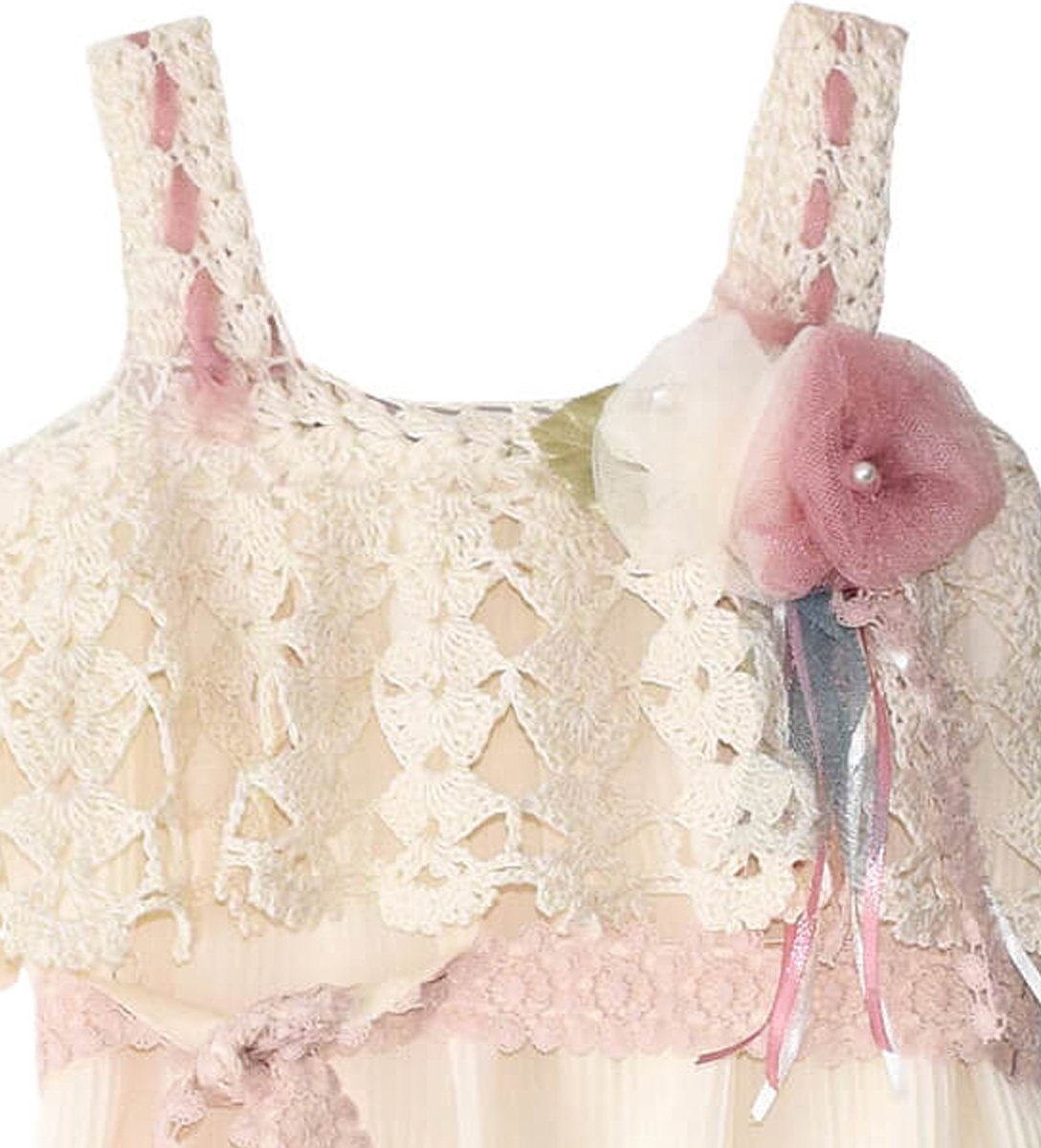 Βαπτιστικό σαλβάρι από χειροποίητο πλεκτό μπούστο με βαμβακερό νήμα, χειροποίητα λουλούδια από τούλι, ροζ ζώνη και πλισέ εκρού ύφασμα στο κάτω μέρος. Βαπτιστικά ρούχα, ελληνικής ραφής, υψηλής ποιότητας. Παράγονται στον επαγγελματικό μας χώρο κατά παραγγελία στα μέτρα του παιδιού.