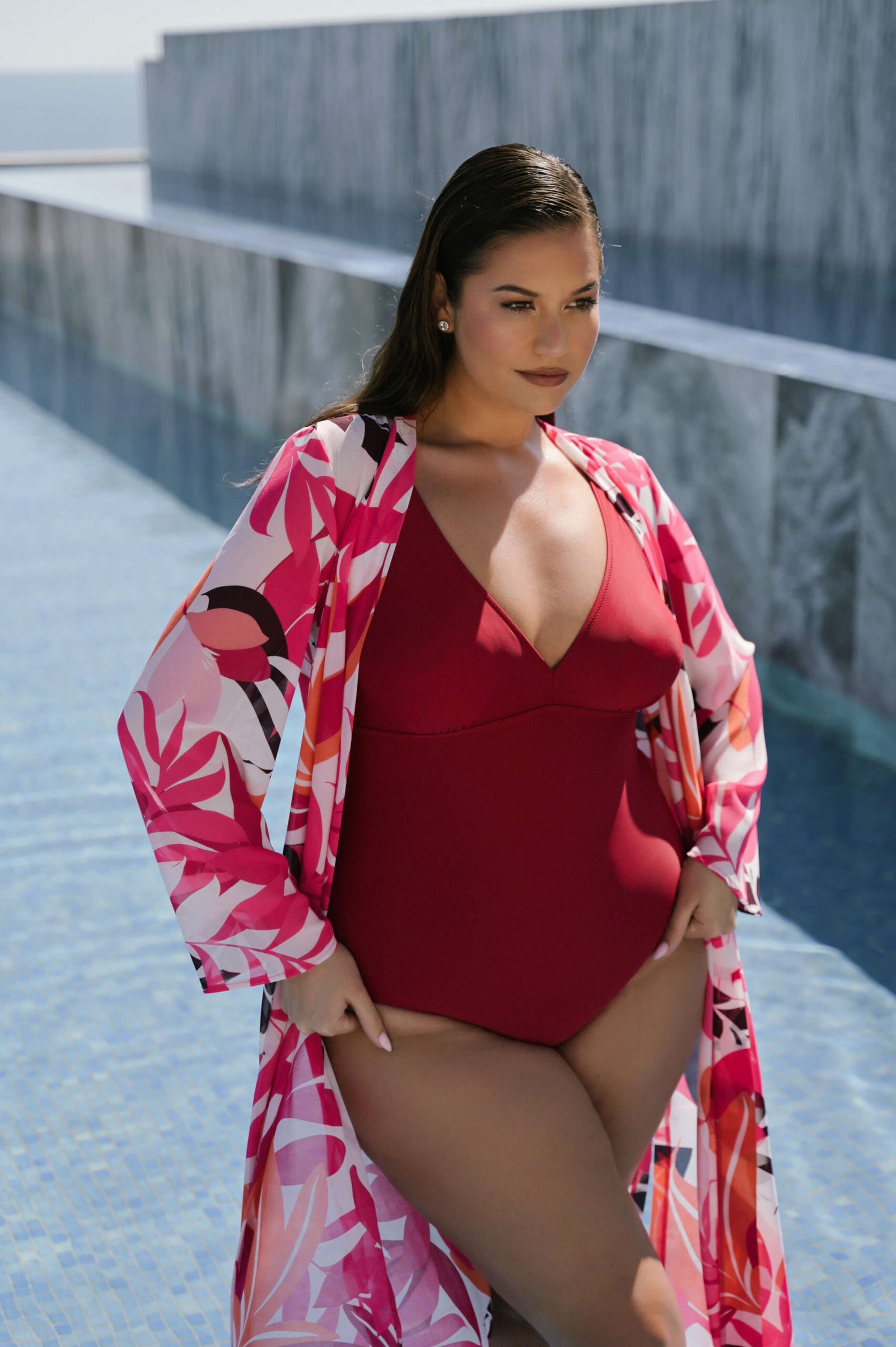 Ολόσωμο Μαγιό Iro Μπoρντό | Plus Size Ρούχα