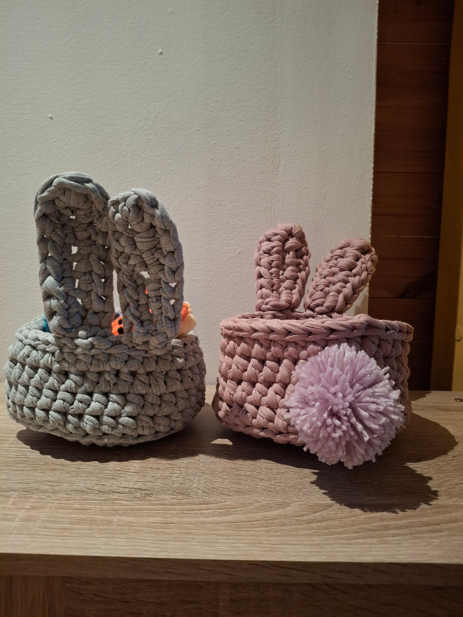 Πασχαλινά καλαθια πλεγμένα με βελονάκι και μακό νήμα σε σχήμα κουνελάκι
