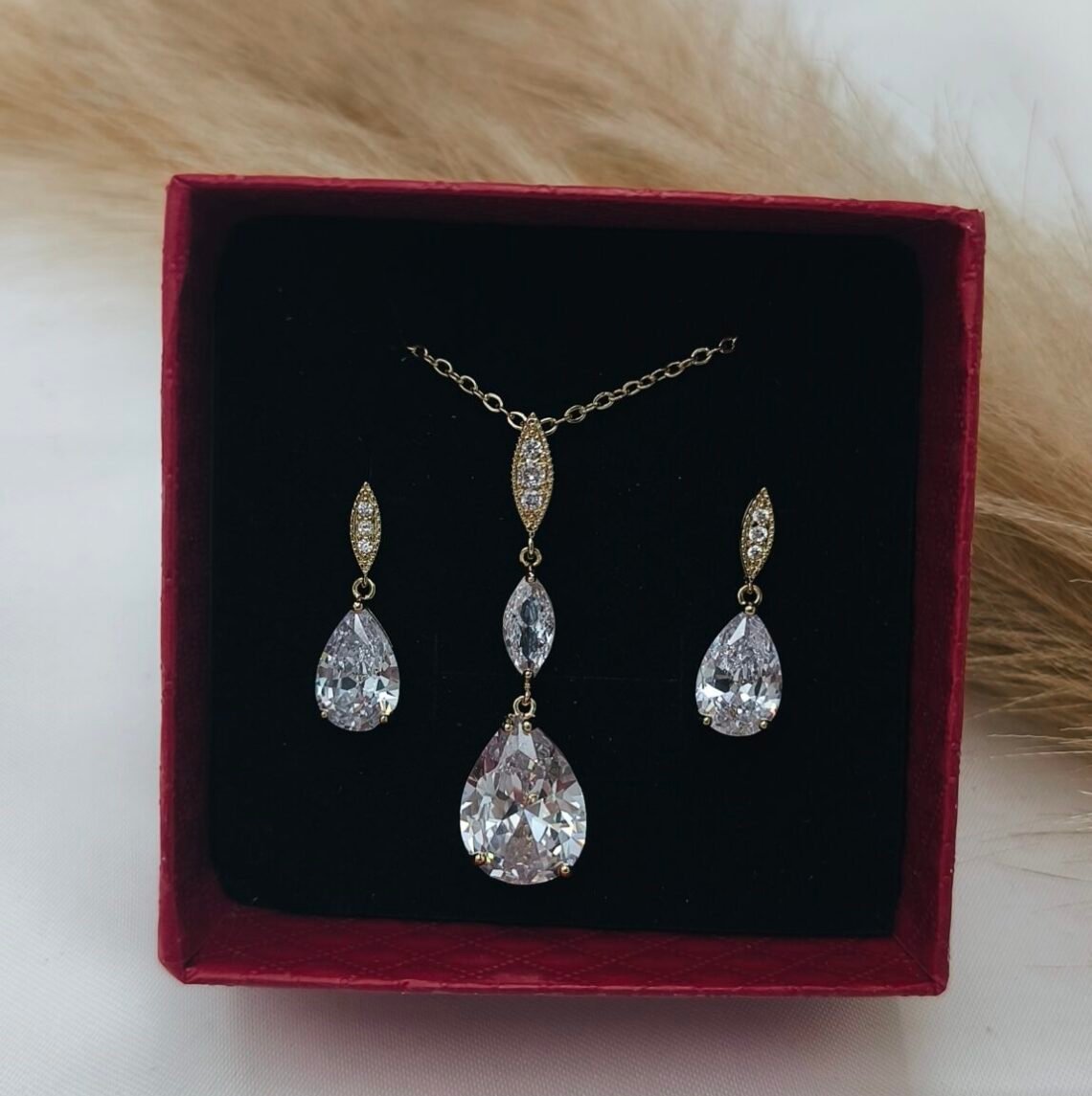 Σετ κοσμημάτων σε επιχρυσωμένο κράμα, υπό αλλεργικά με λαμπερούς γνήσιους κρυστάλλους ζιρκόν.
