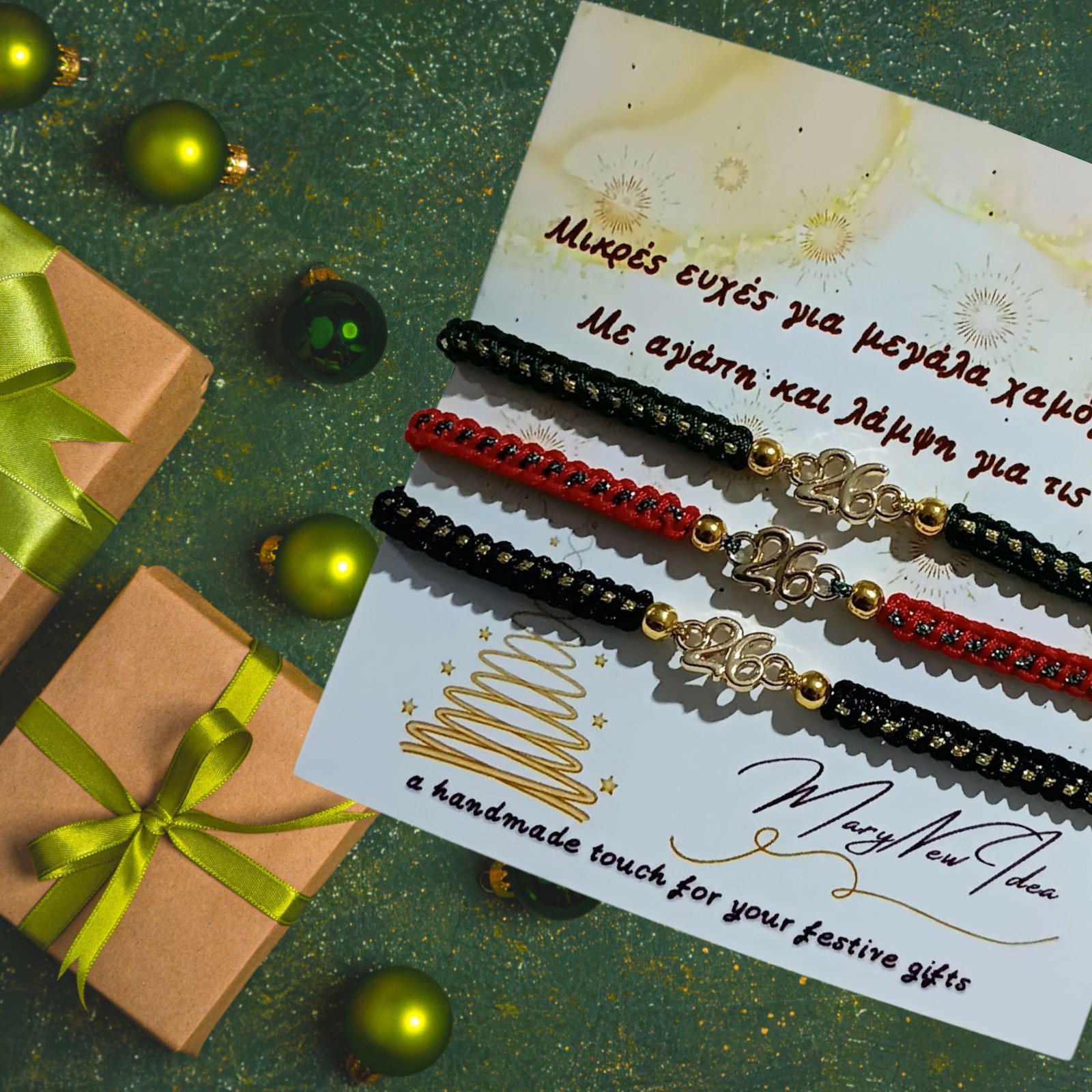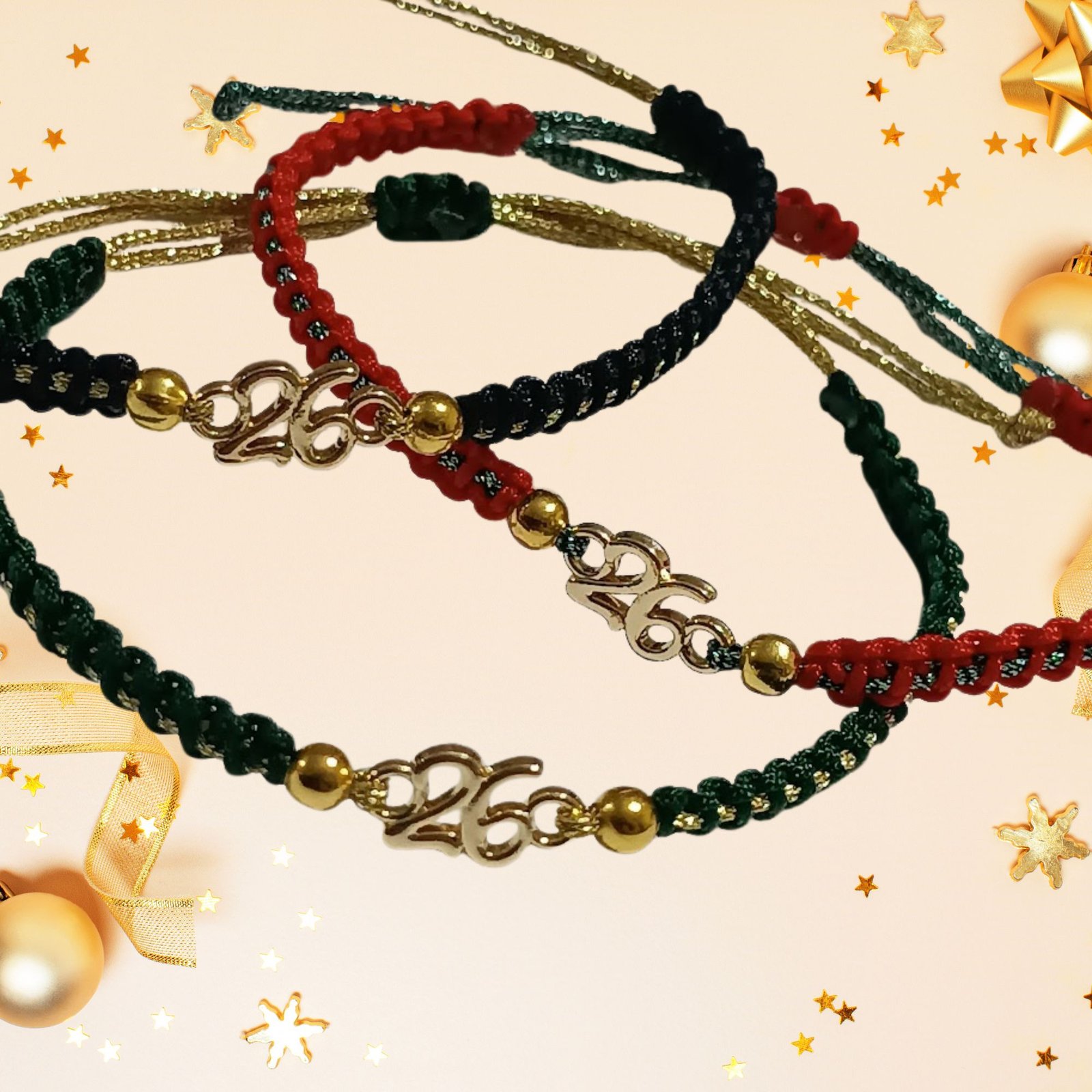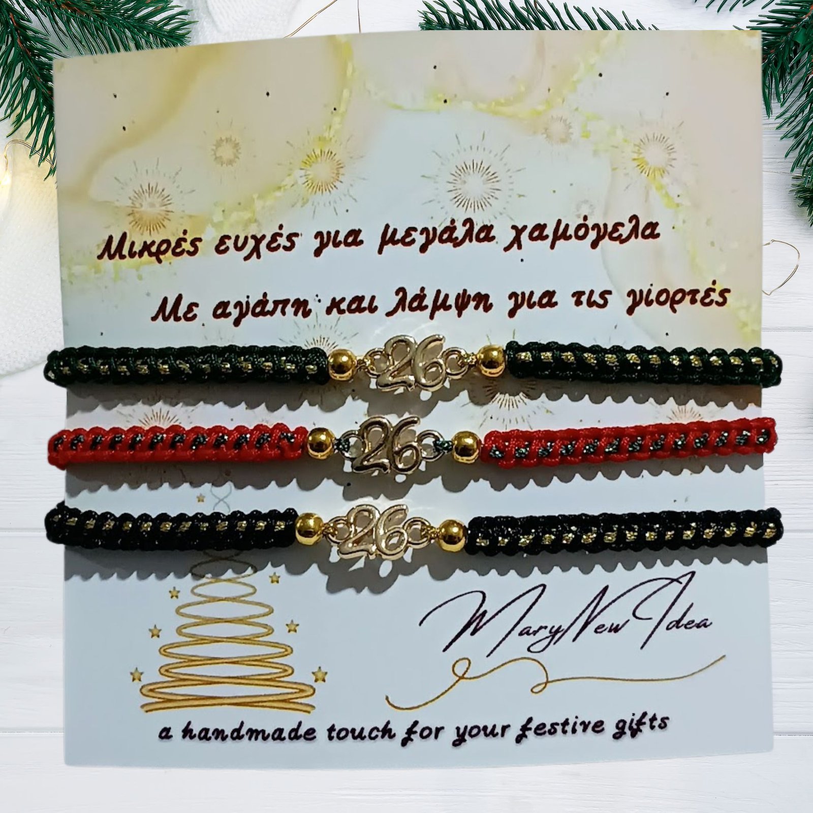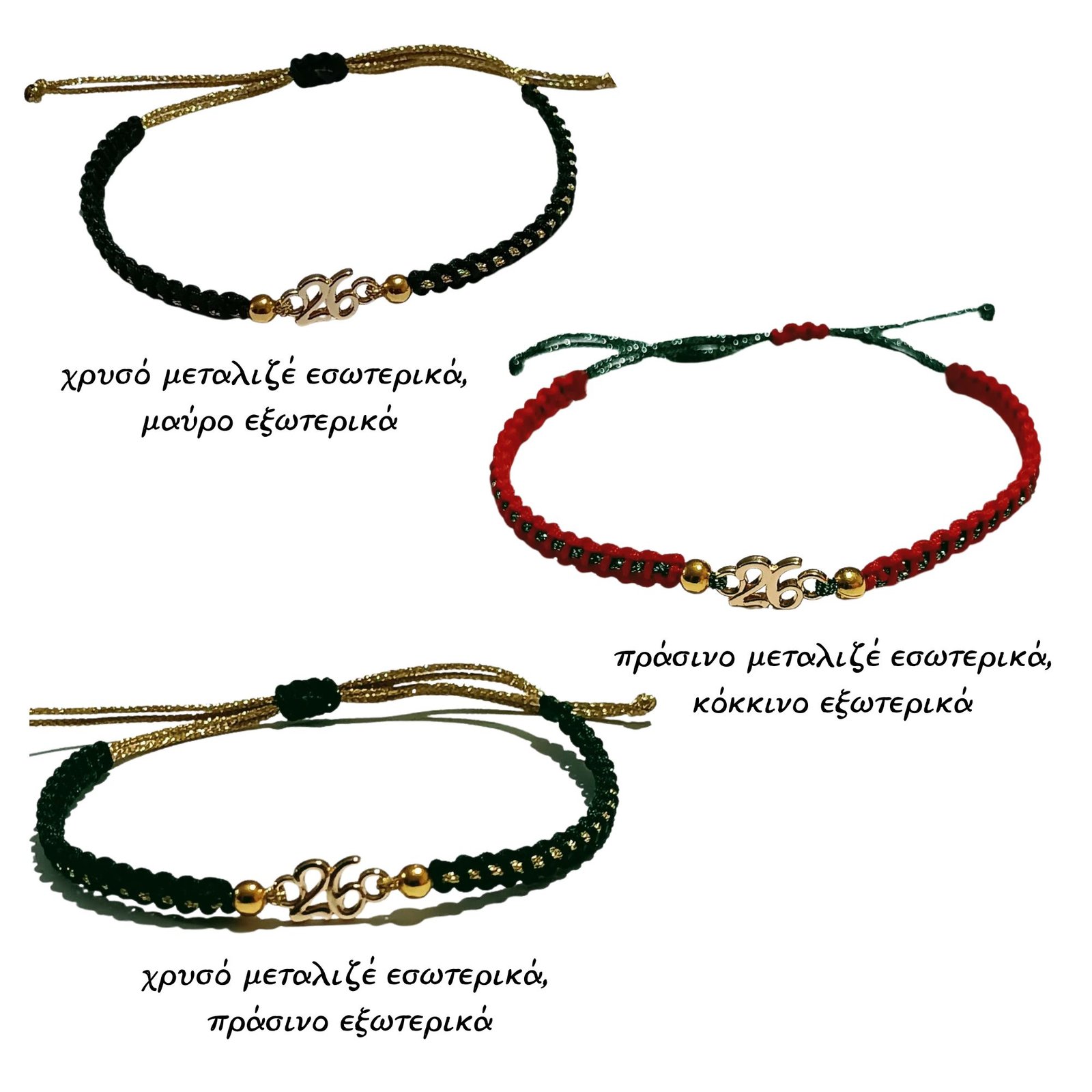 Σετ 3 βραχιολάκια μακραμέ “Αστροφεγγιά & Ευημερία” με μεταλλικό στοιχείο “26” πλεγμένα στο χέρι, σε αρμονικούς, κομψούς χρωματισμούς.