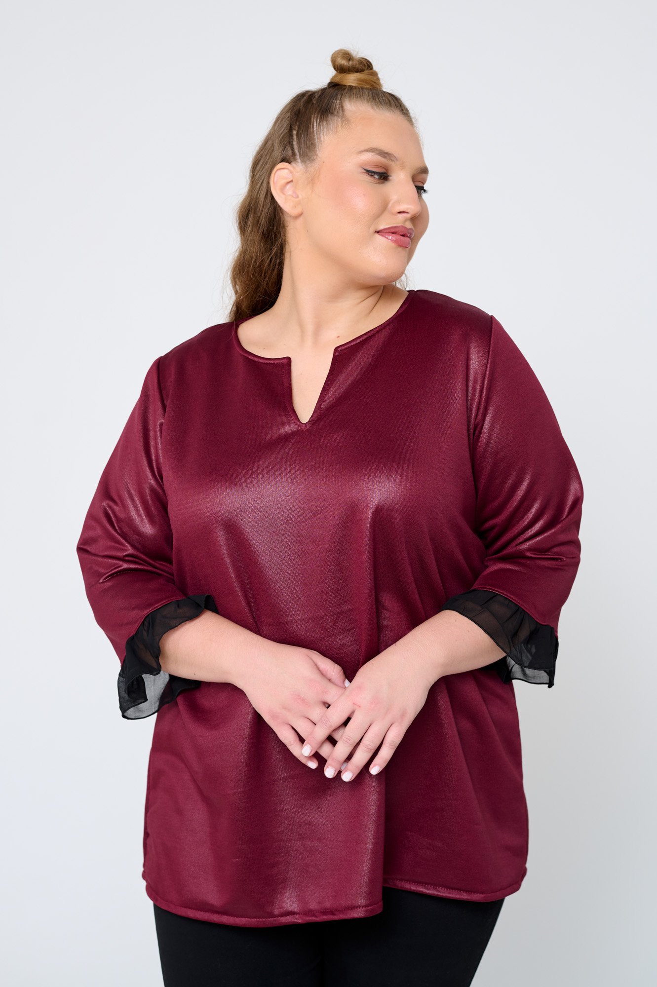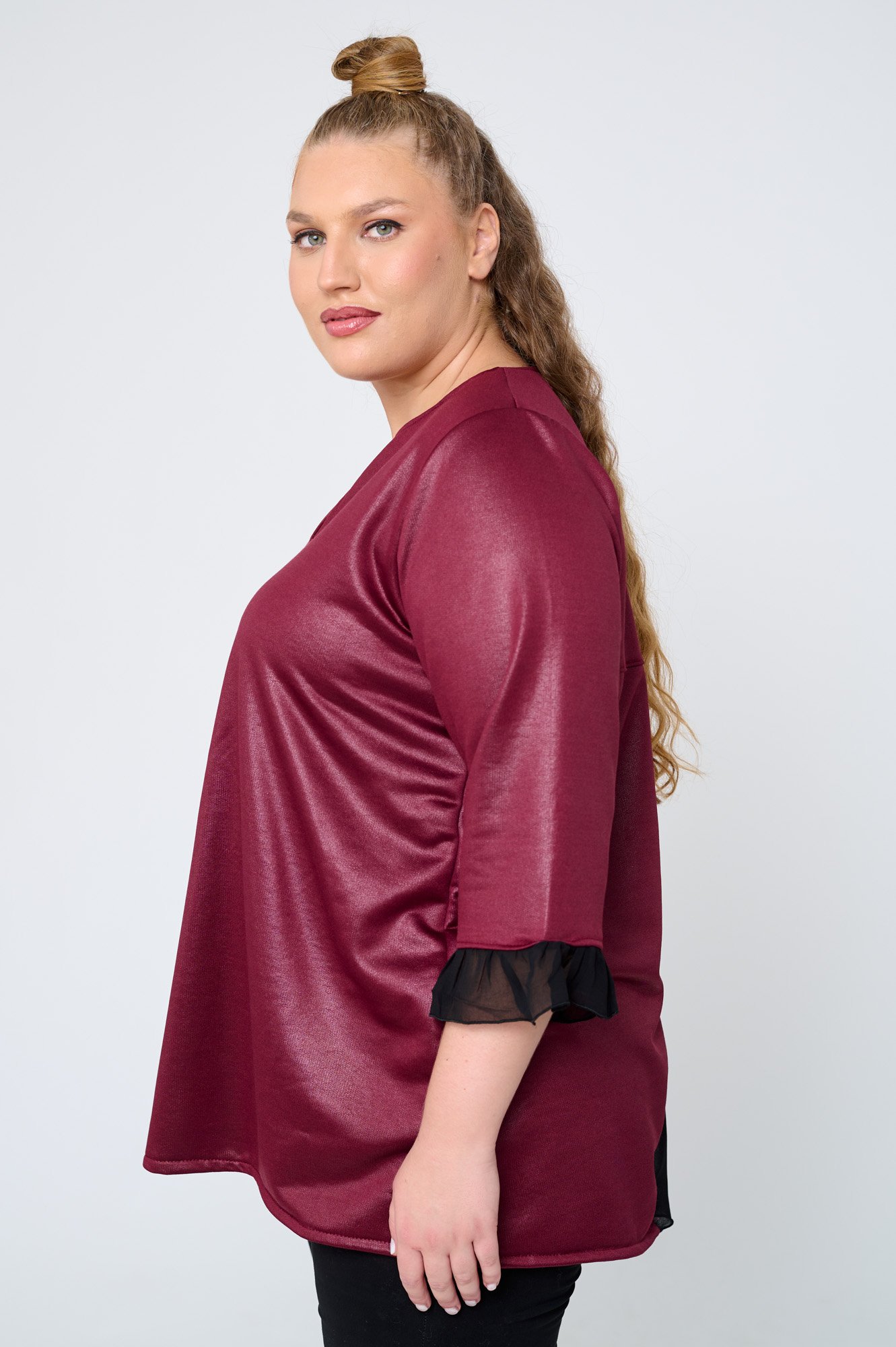 Το μπλούζα Μπλούζα Δερματίνη Με Διαφάνεια Lyla Μπορντό της JUCITA συνδυάζει άνεση και στυλ. Plus size μόδα για κομψές γυναίκες γεμάτες αυτοπεποίθηση.