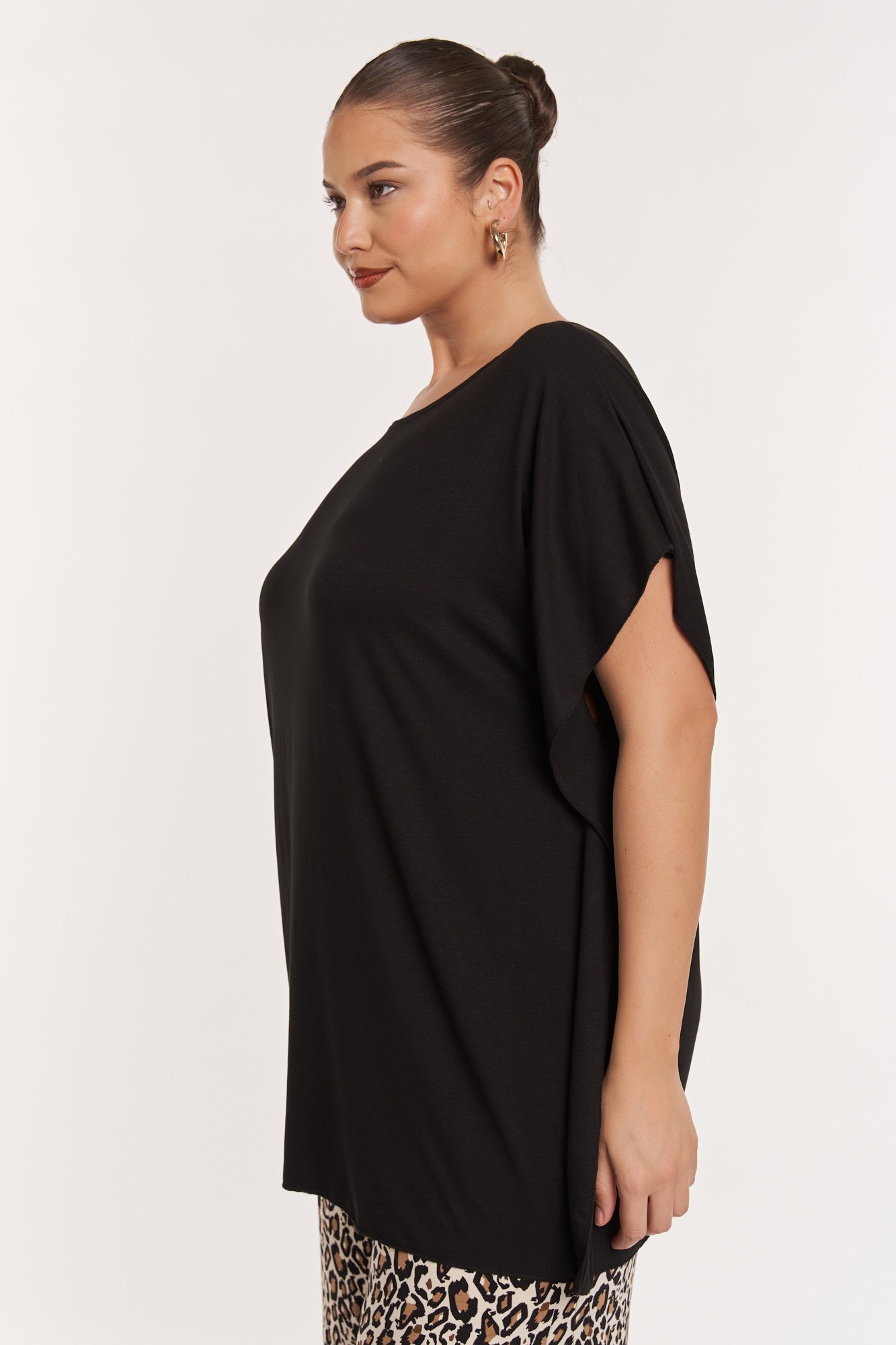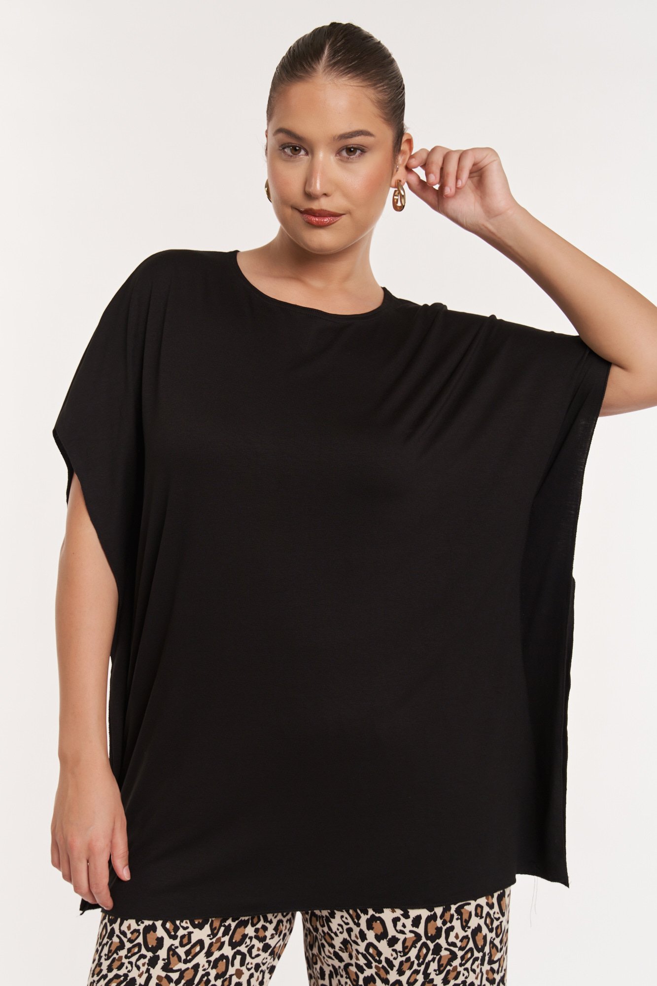 Μπλούζα από ελαστική βισκόζ. Στρογγυλή λαιμόκοψη. Κοντά φαρδιά μανίκια ζαπονέ. Σε άνετη, ριχτή γραμμή. One size που καλύπτει στήθος και περιφέρεια έως 170εκ . Μήκος 82εκ. Η Ιβάνα έχει ύψος 180εκ, στήθος 114εκ ,μέση 88εκ και περιφέρεια 121εκ.