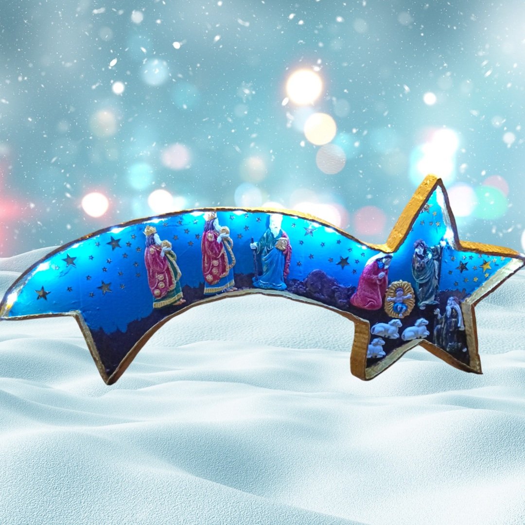 Χειροποίητη Χριστουγεννιάτικη σύνθεση -Η Γέννηση του Χριστού – με φωτισμό LED