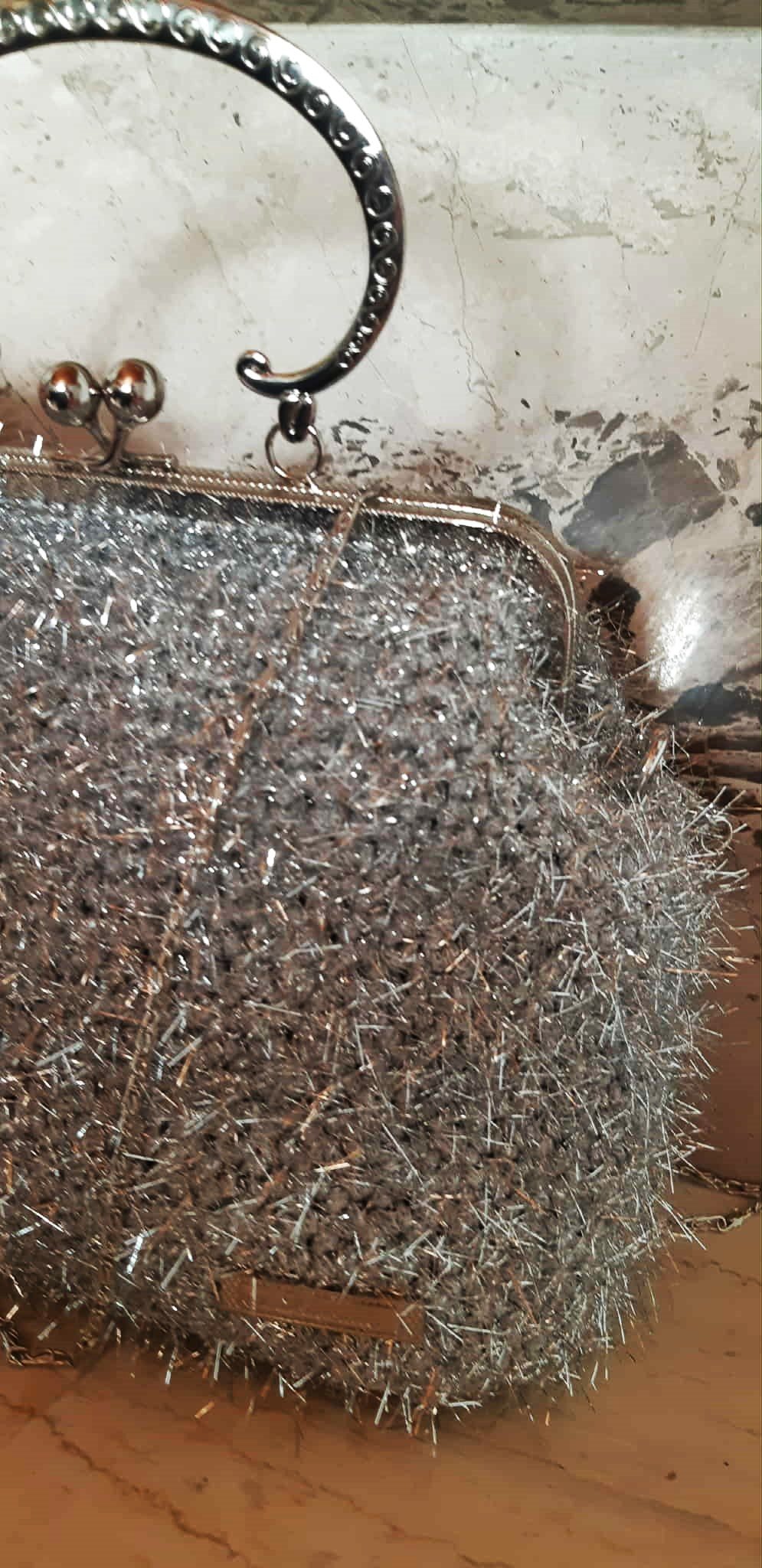 Χειροποίητη γιορτινή τσάντα σε ασημί απόχρωση