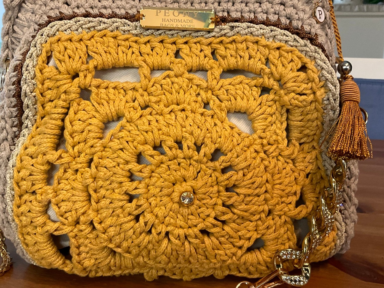 Χειροποίητη πλεκτή τσάντα σε μουσταρδί απόχρωση