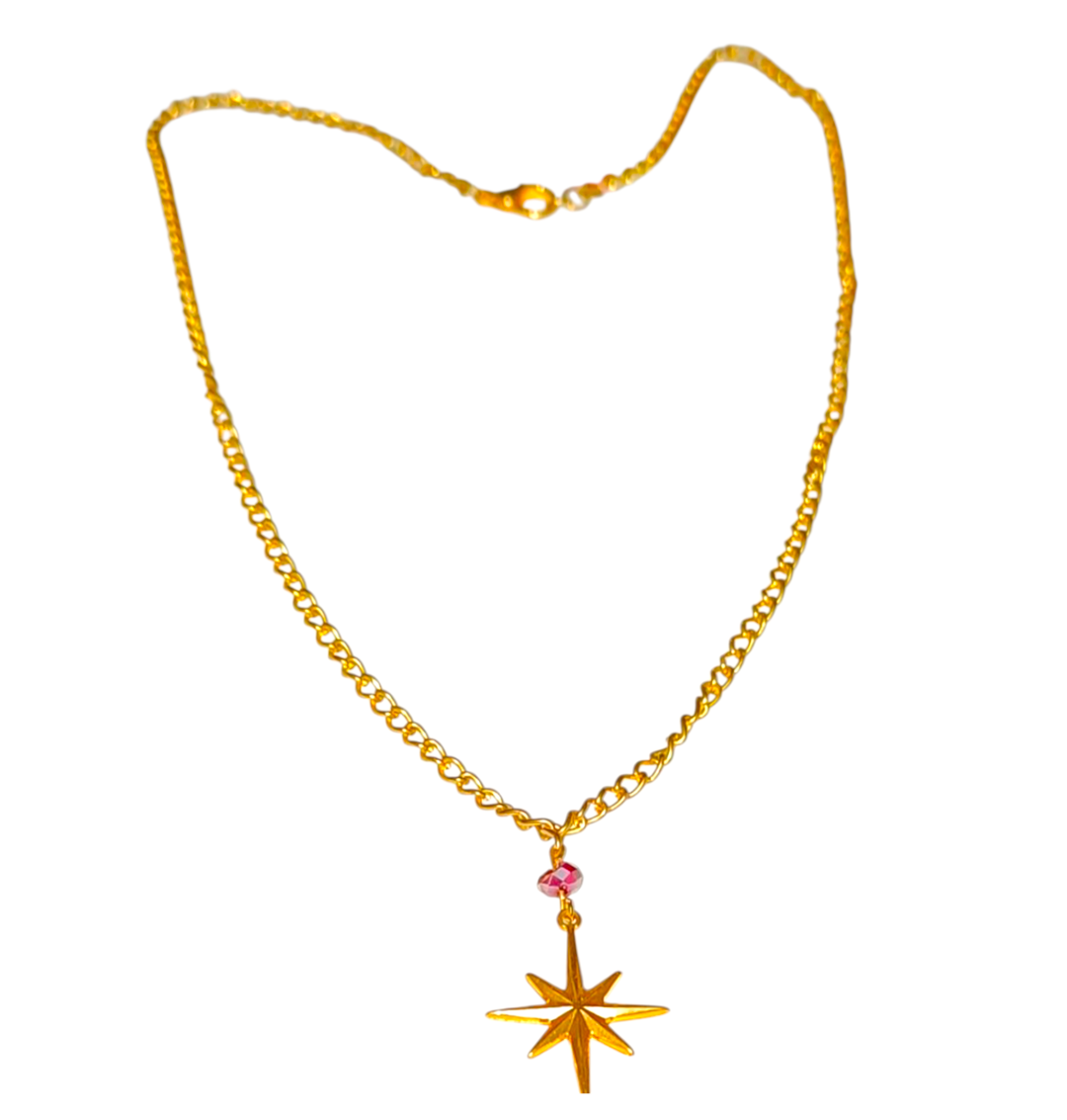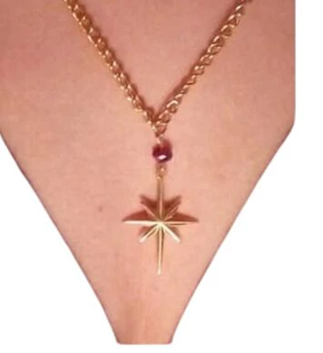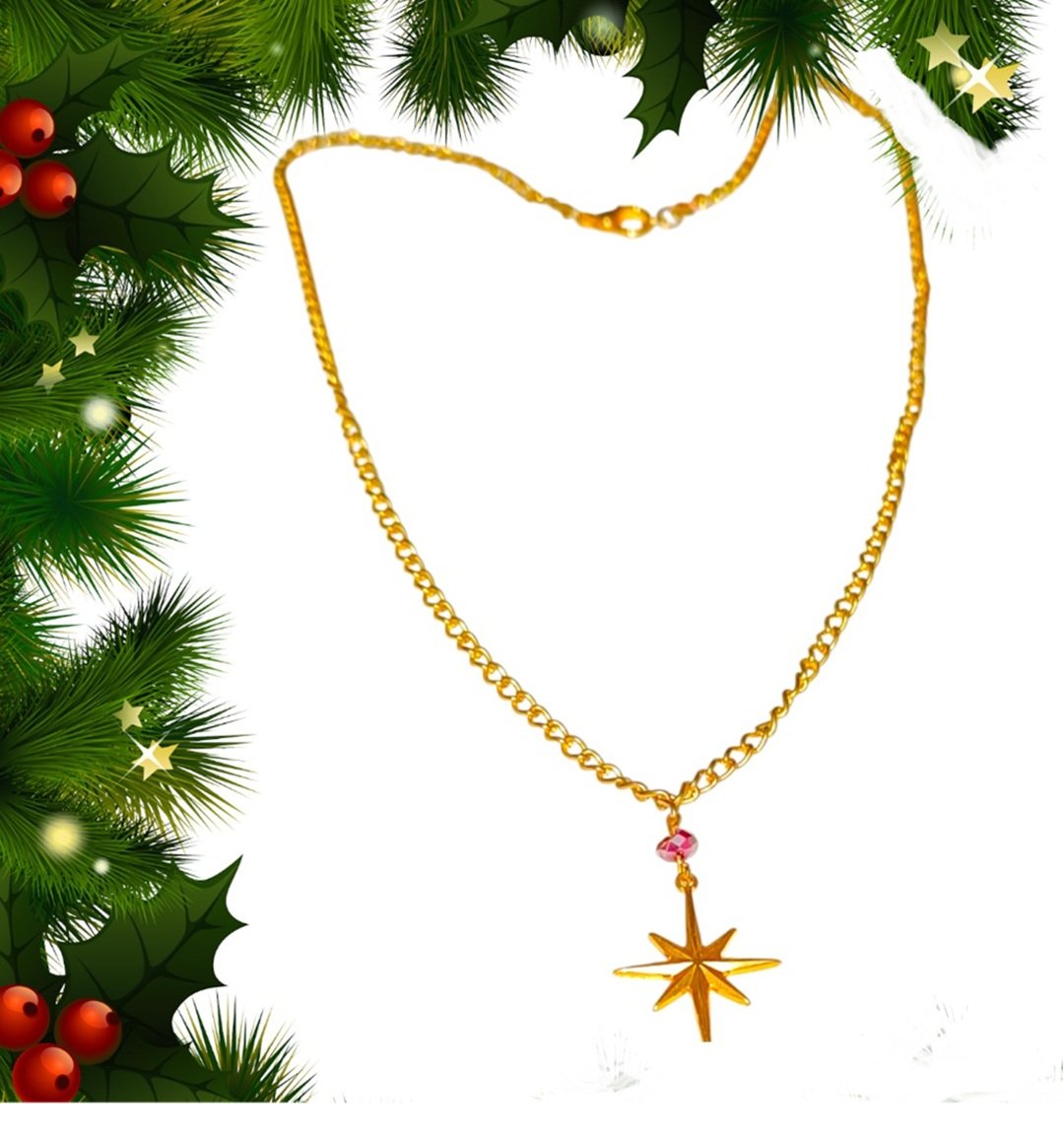 Χειροποιητο Κολιε – το ΑΣΤΕΡΙ της ΒΗΘΛΕΕΜ- με ατσαλινα αλυσιδα και αστερι και κοκκινο κρυσταλλακι