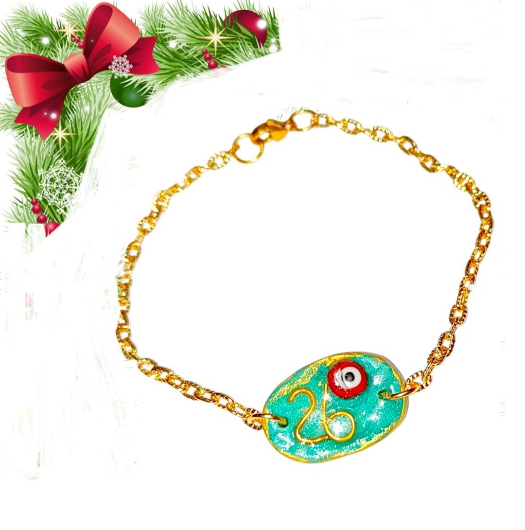 Χειροποιητο Βραχιολι Γουρι 2026, με ατσαλινη αλυσιδα ,26 και ματακι