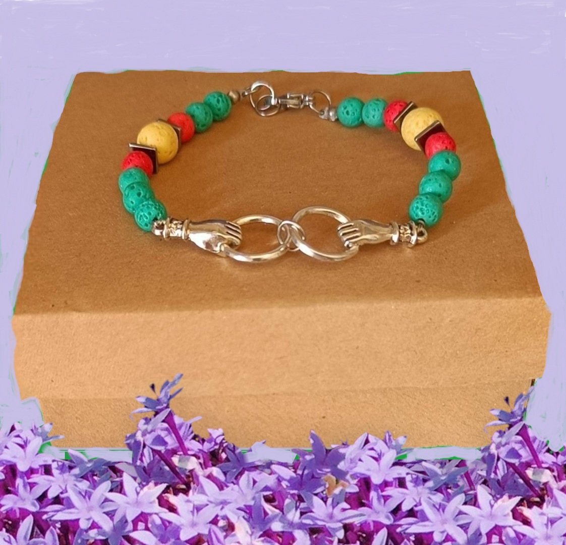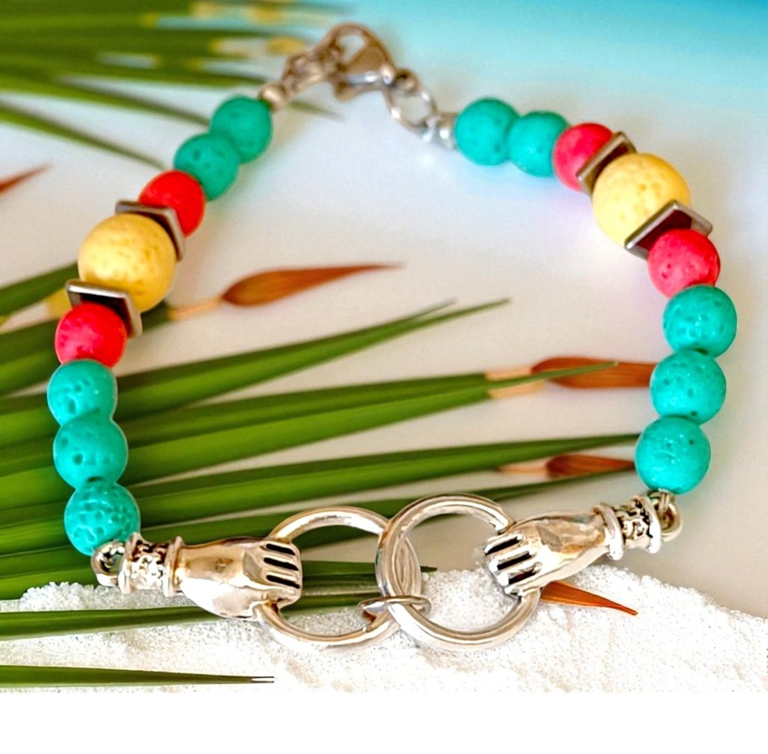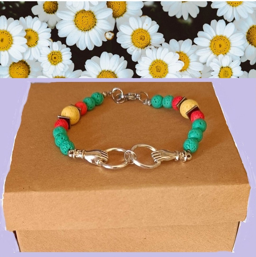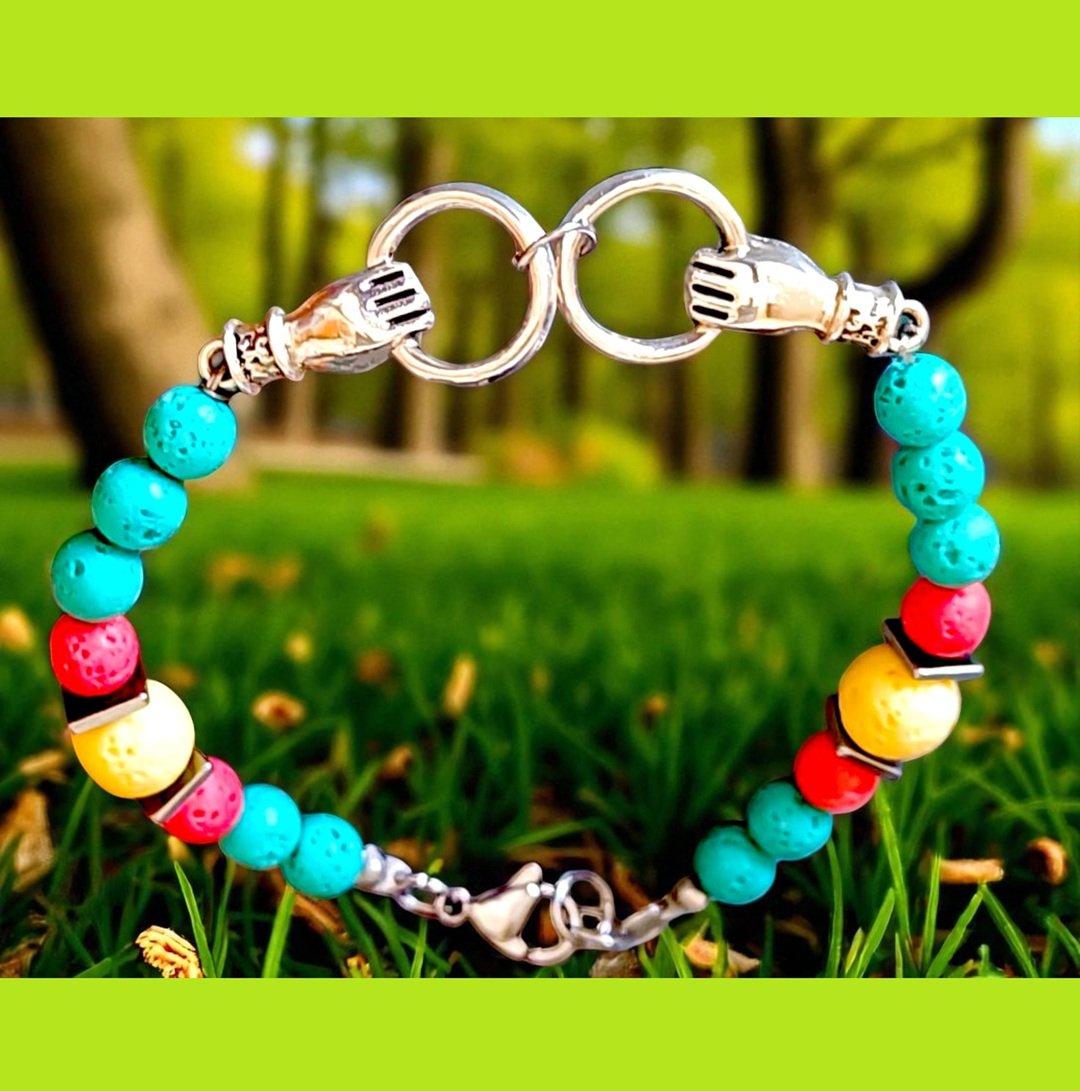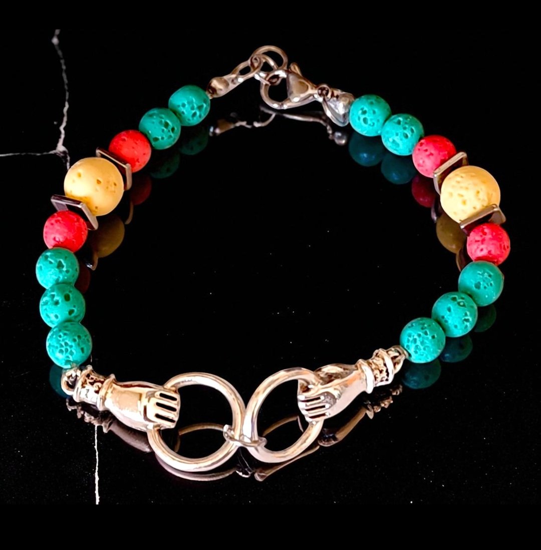 Χειροποιητο Βραχιολι με Ημιπολυτιμους λιθους Λαβα και Αιματιτη και ατσαλινα χερακια με κρικους.Ατσαλινο κουμπωμα αυξομειουμενο.Ιδανικο για ολες τις ωρες και προτοτυπο