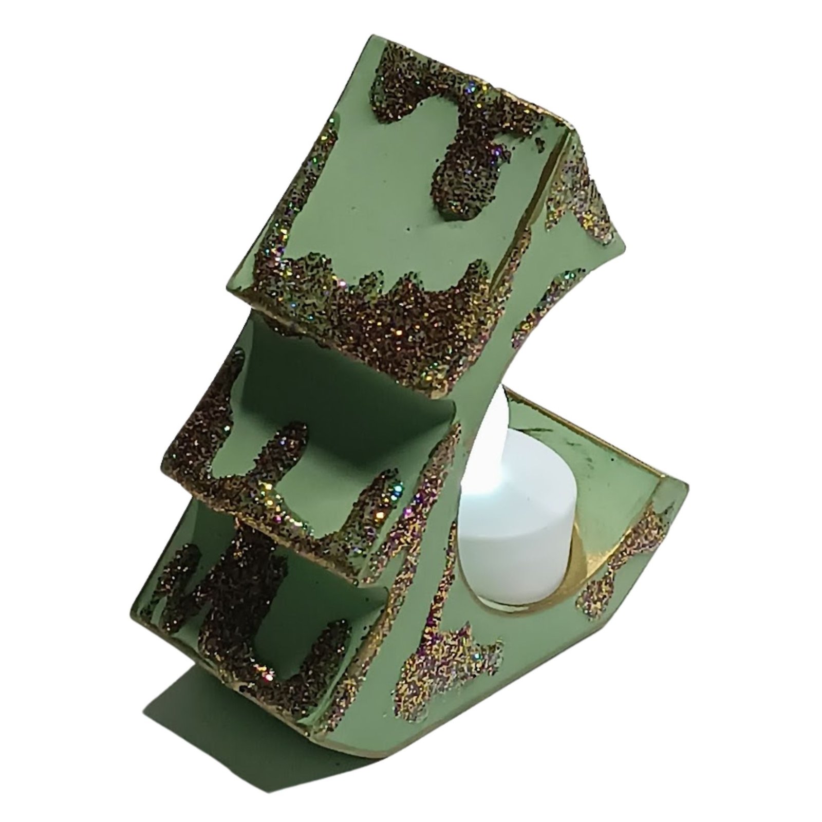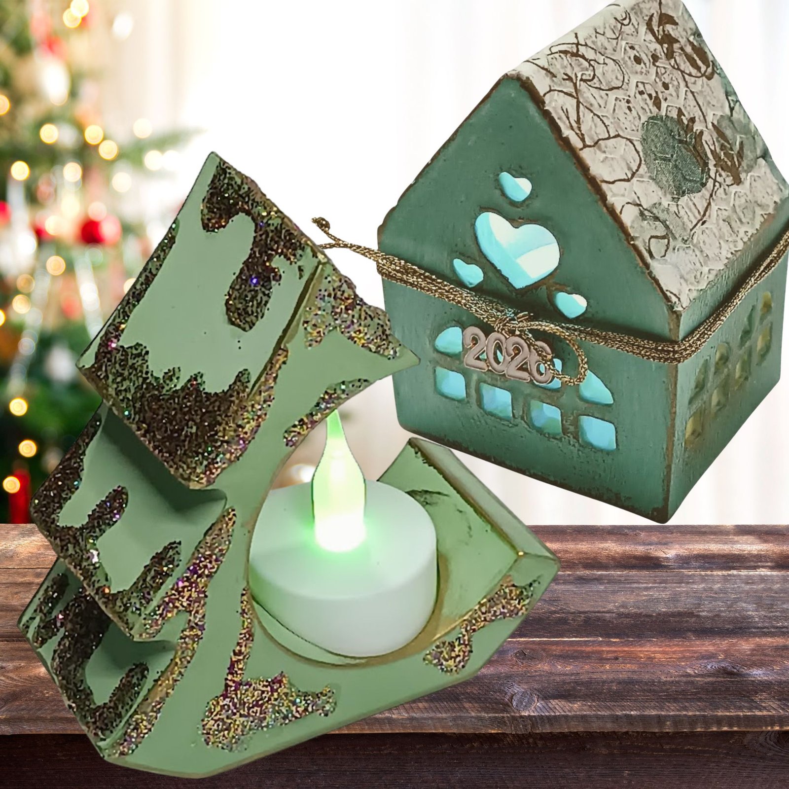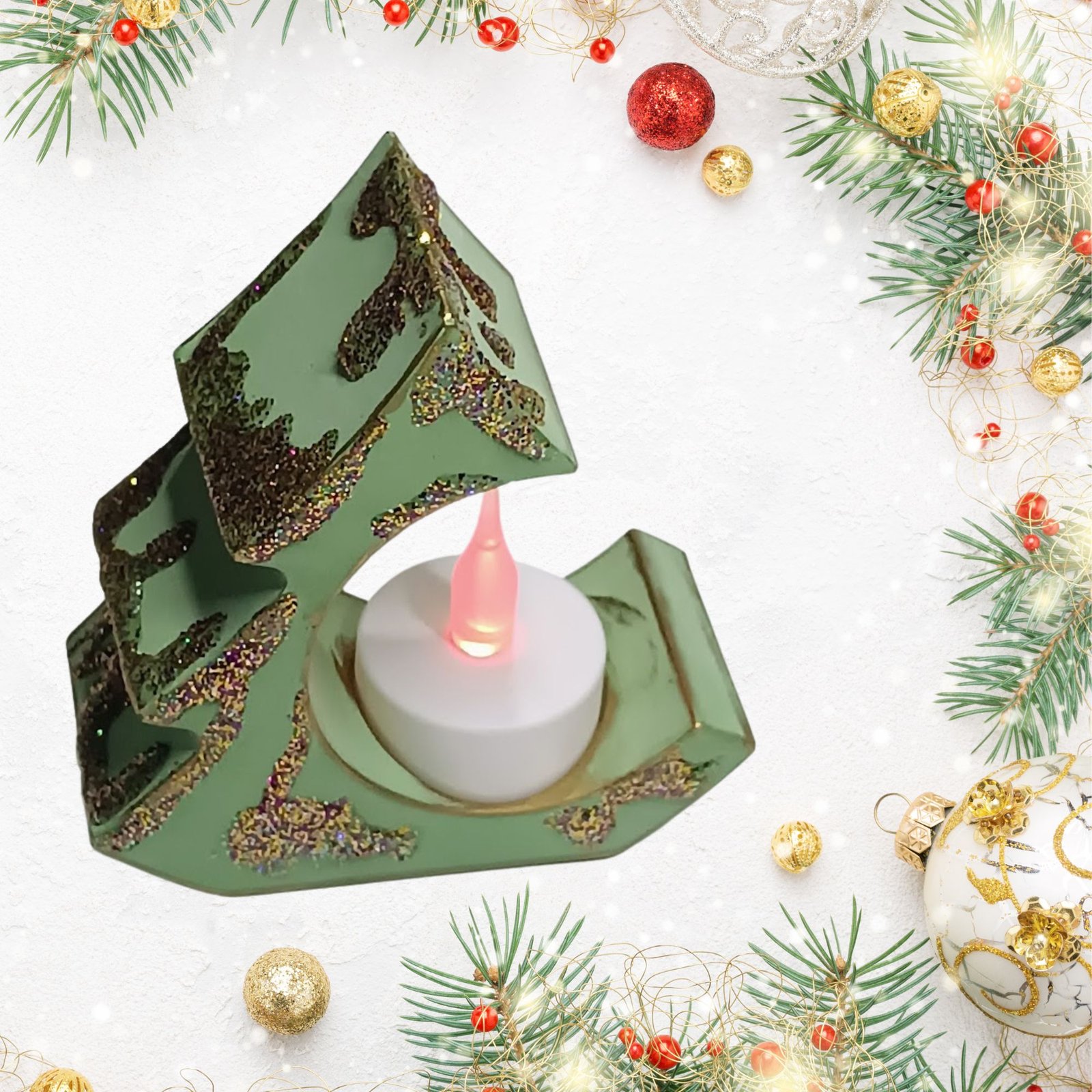 Χειροποίητο διακοσμητικό από σκόνη πορσελάνης, “χιονισμένες” λεπτομέρειες από γκλίτερ και χρυσό φινίρισμα.