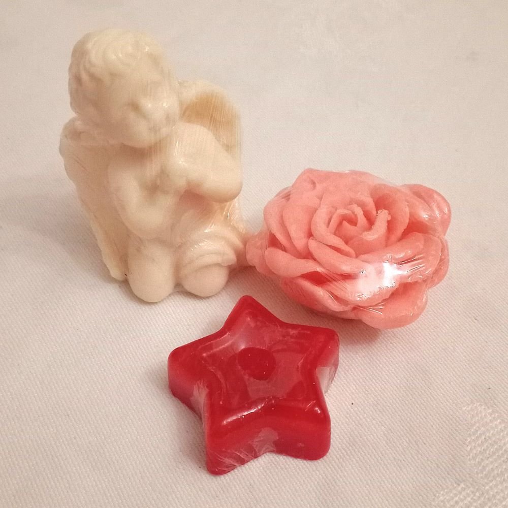 Χριστουγεννιάτικο πουγκάκι με σαπουνάκια, αγγελάκι, αστέρι, τριαντάφυλλο