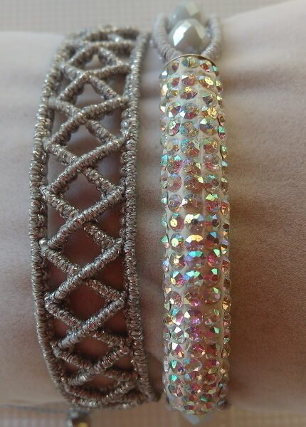 Τα ασημί κρυσταλλάκια που υπάρχουν στο μοτίβο του βραχιολιού, του προσδίδουν μια ιδιαίτερη λάμψη. Έχει αυξομειούμενο κλείσιμο, για να προσαρμόζεται σε όλα τα μεγέθη των καρπών του χεριού. Θα το παραλάβετε σε πολυτελή συσκευασία δώρου.