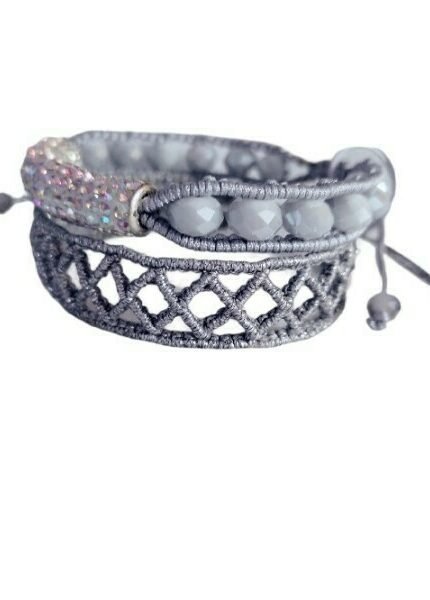 Για εσάς, που θέλετε να ξεχωρίζετε με τις επιλογές των κοσμημάτων σας , σας έχω την καλύτερη λύση. Πρόκειται για ένα έθνικ εντυπωσιακό χειροποίητο βραχιόλι – δαχτυλίδι, πλεγμένο με την τεχνική του μακραμέ. Σίγουρα θα γίνει το αγαπημένο σας κοσμήματα και δεν θα μείνει απαρατήρητο, όταν το φοράτε. Η πλέξη του , θυμίζει πολλαπλές αλυσίδες που εναλλάσσονται με μικρές καρδιές και είναι φτιαγμένο με γκρι σκούρο μεταξωτό κορδόνι, Α’ ποιότητας.
