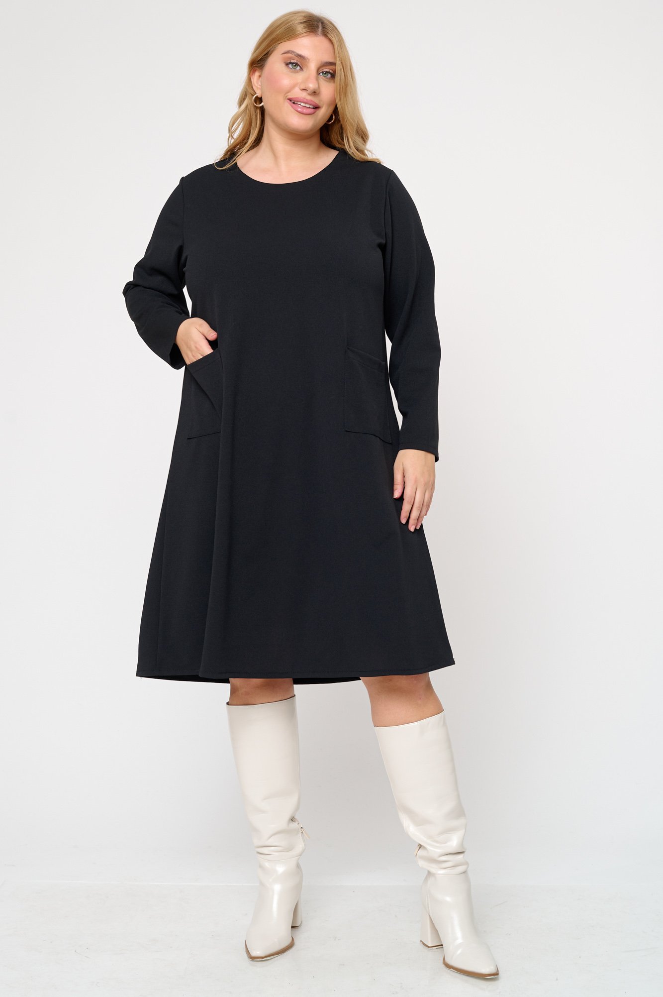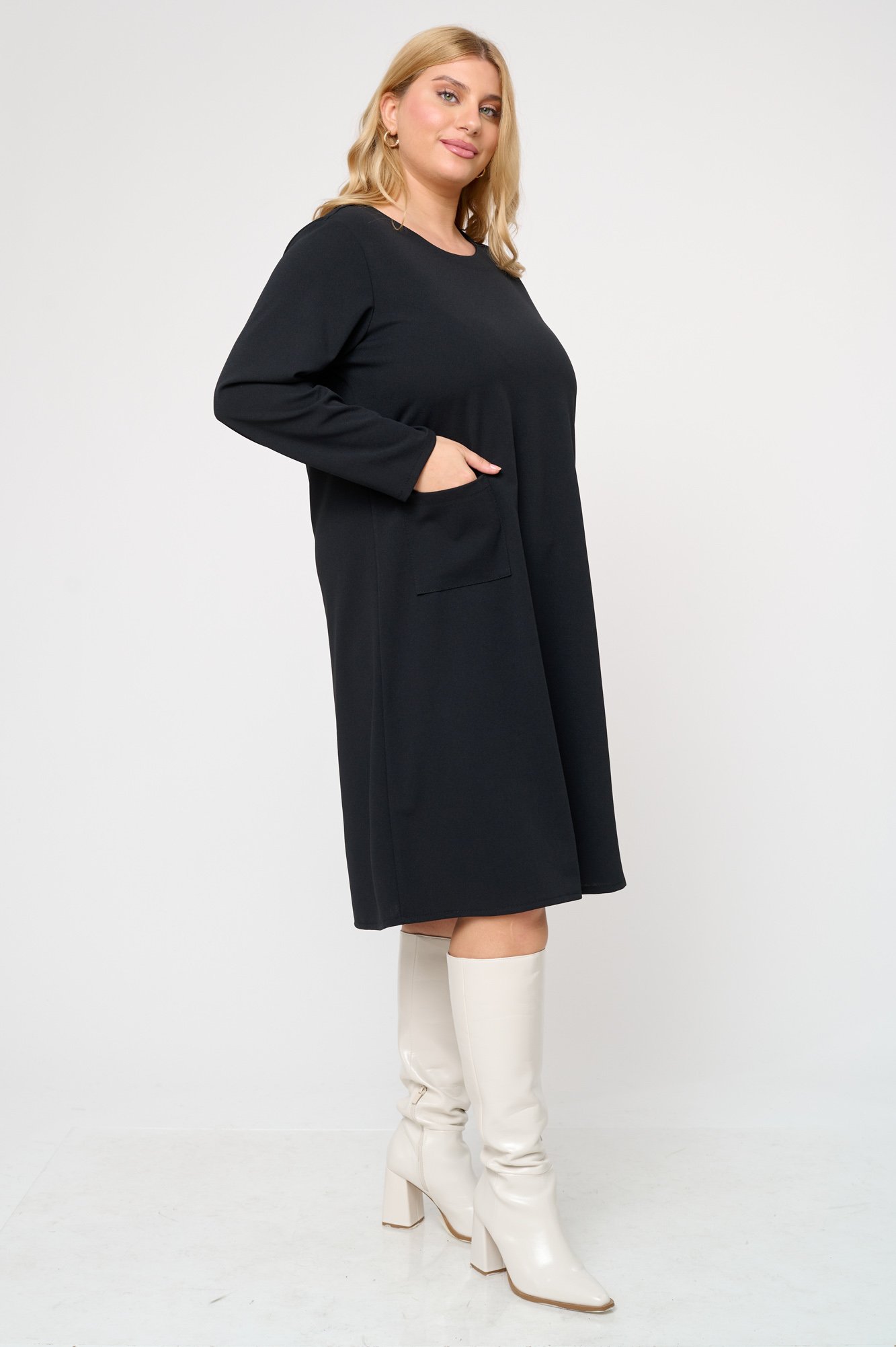 Το φόρεμα Φόρεμα Κρεπ Τσέπες Άλφα Γραμμή Adeline Μαύρο της JUCITA συνδυάζει άνεση και στυλ. Plus size μόδα για κομψές γυναίκες γεμάτες αυτοπεποίθηση.