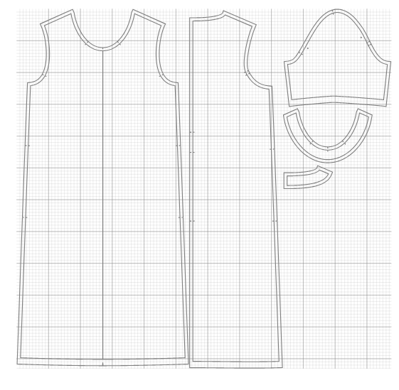 Γυναικείο άνετο φόρεμα, πατρόν ραπτικής, plus size σειρά, μήκος γόνατο, με καθαρίσματα λαιμού. PDF αρχείο σε πραγματικό μέγεθος Α0, Α4 ή εκτυπωμένο.