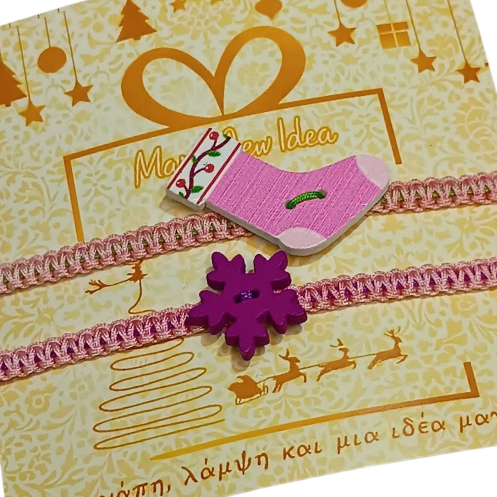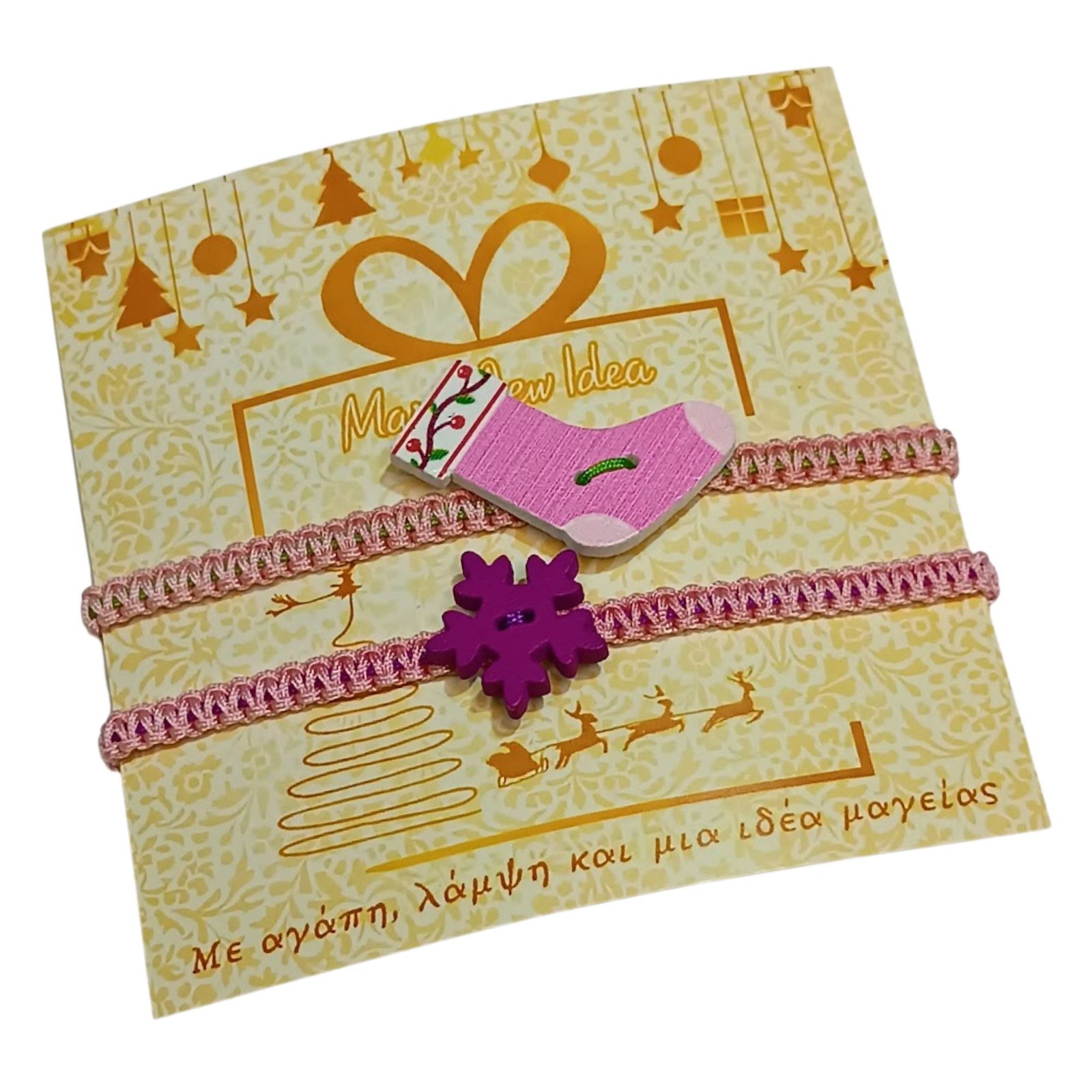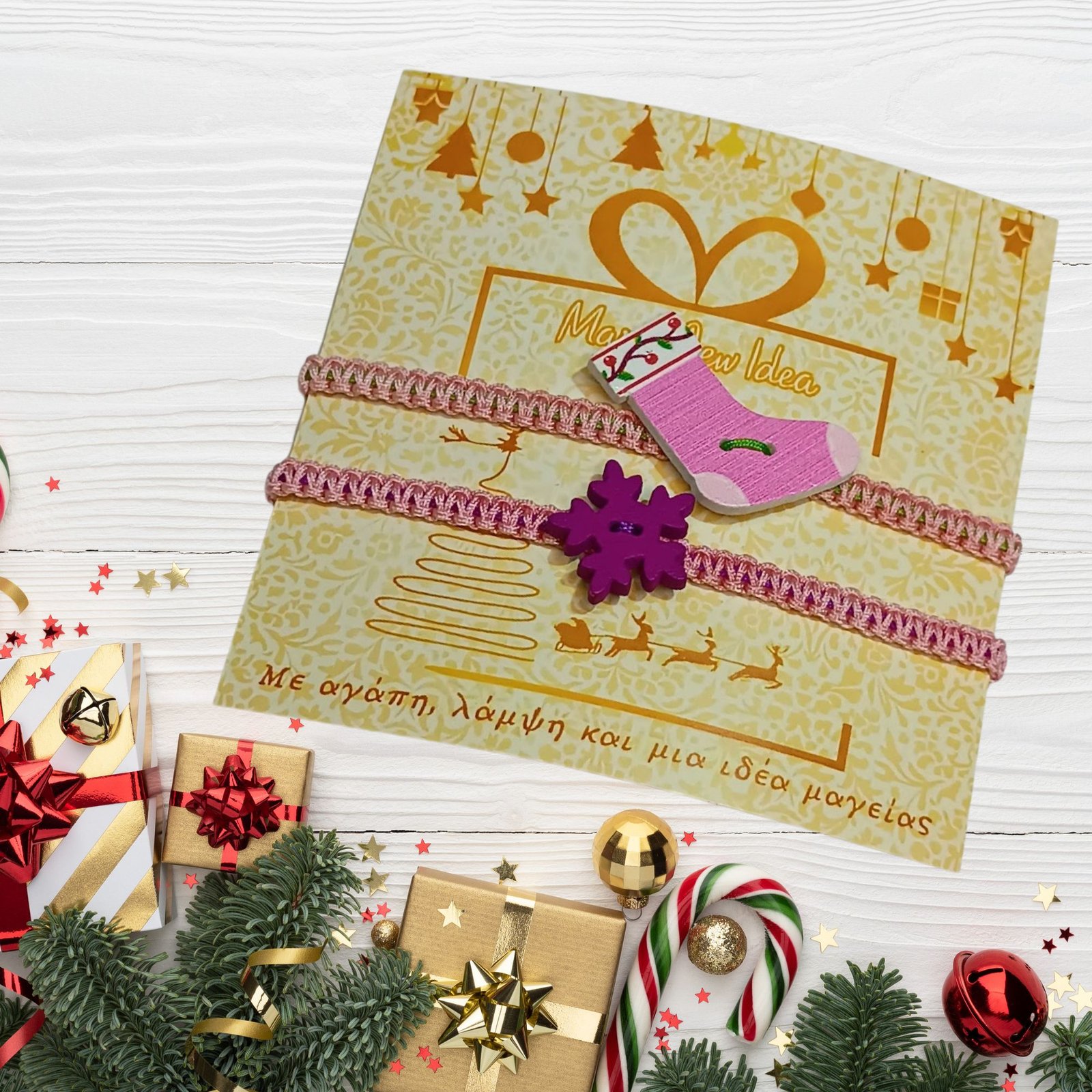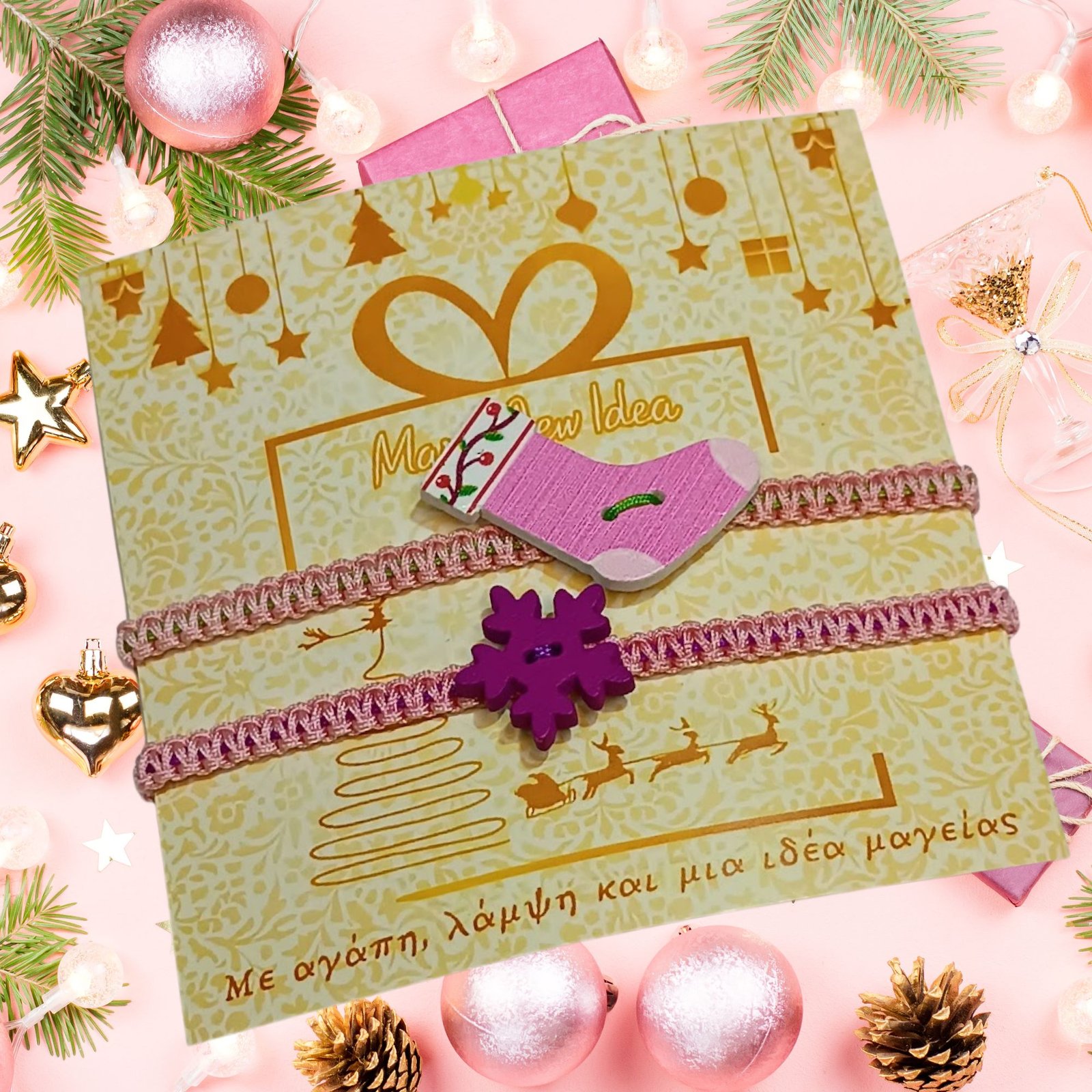Γιορτινό Σετ 2 Βραχιολιών μπότα & νιφάδα σε μωβ–ροζ