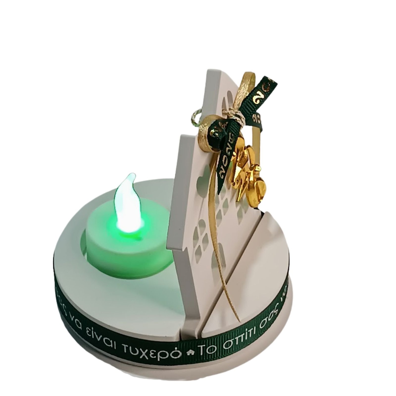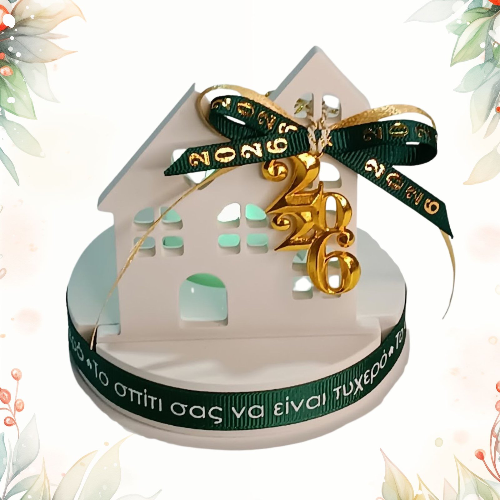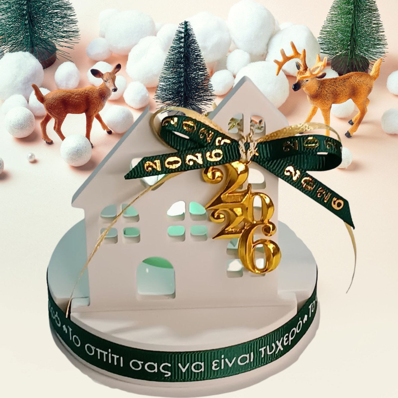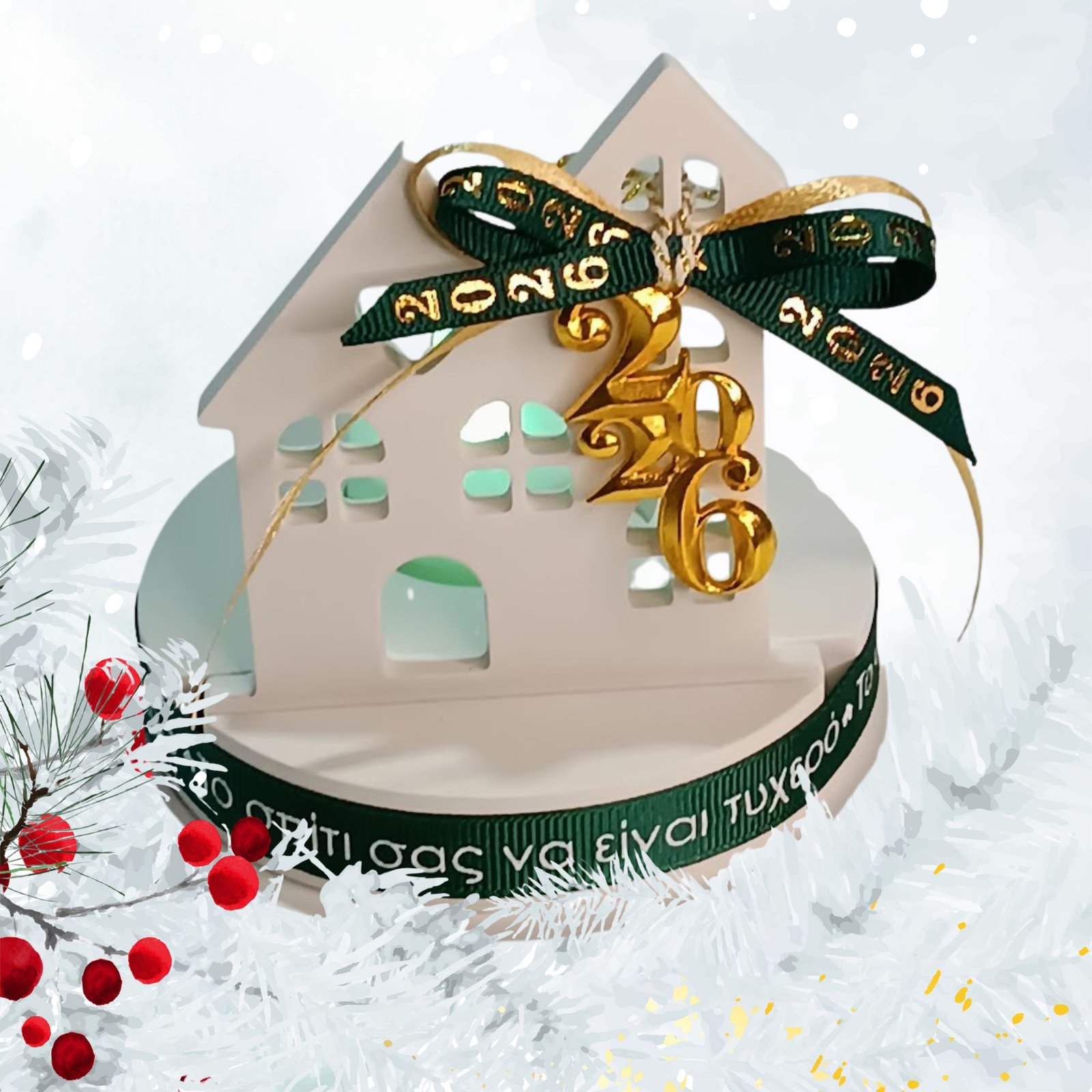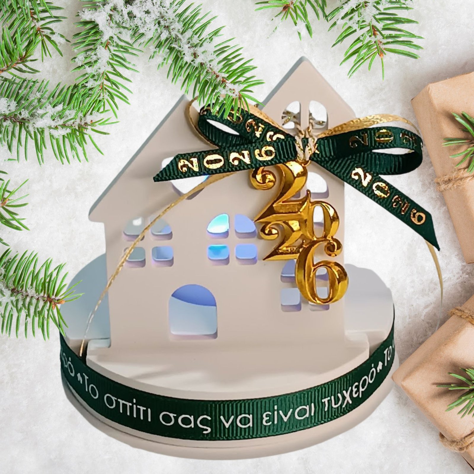 Γούρι 2026 σπίτι από σκόνη πορσελάνης με LED ρεσό