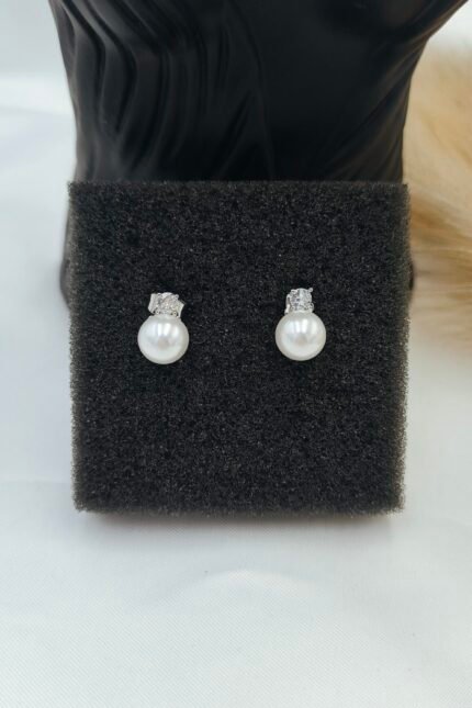 Σκουλαρίκια επιπλατινωμένα ασημένια με πέρλα πολύ κομψά για νυφικά σκουλαρίκια ή επίσημες περίστασεις.