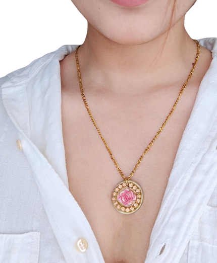 Κολιέ μακρύ με κορδόνι χάντρες και στοιχείο ρόμβο μήκους 43εκ.